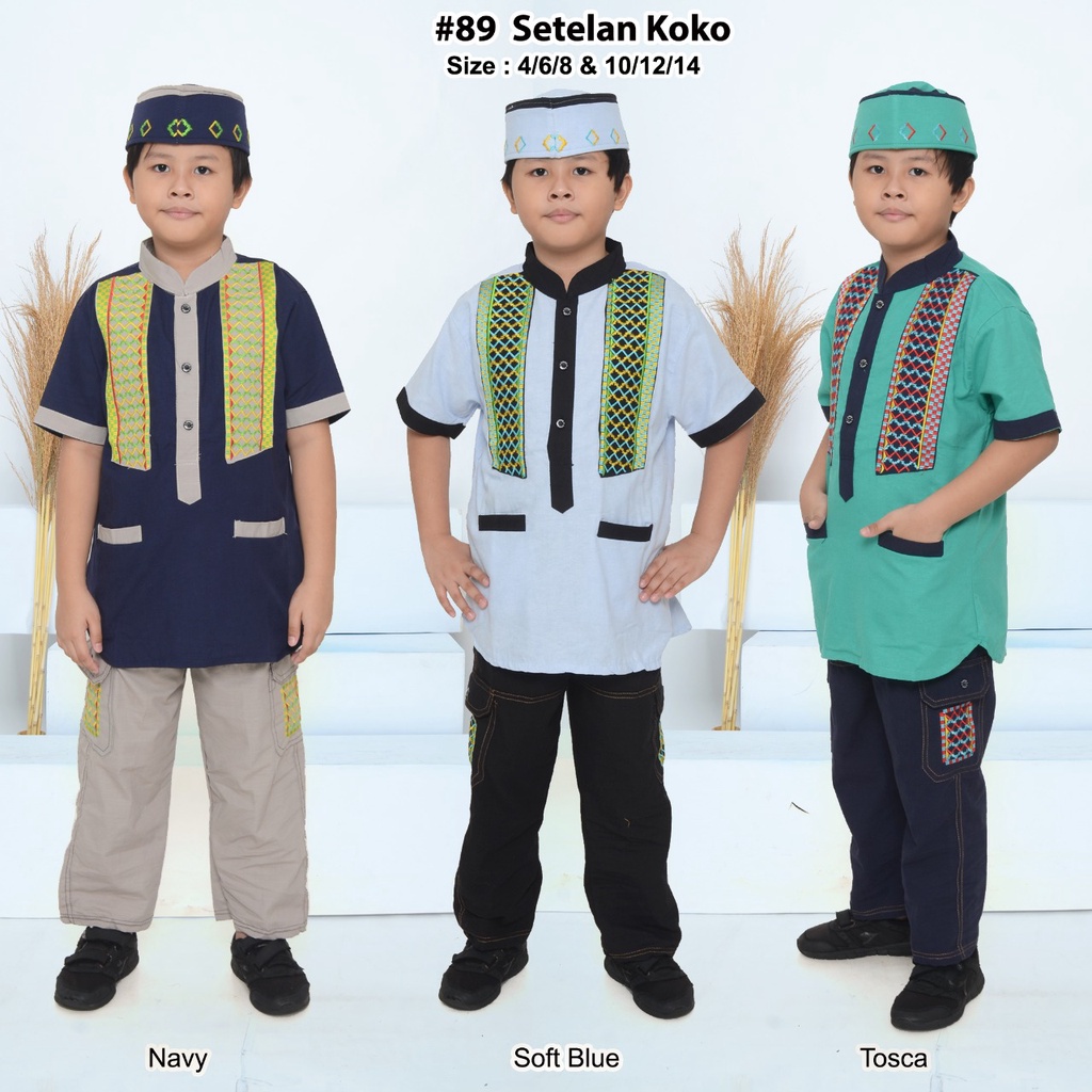 Setelan Koko Anak Pakistan / Koko Kurta / Kualitas Premium / Baju Muslim Anak Laki-Laki / Bordir #89 Usia 4 Tahun - 12 Tahun / Koko Jumbo / Fashion Muslim