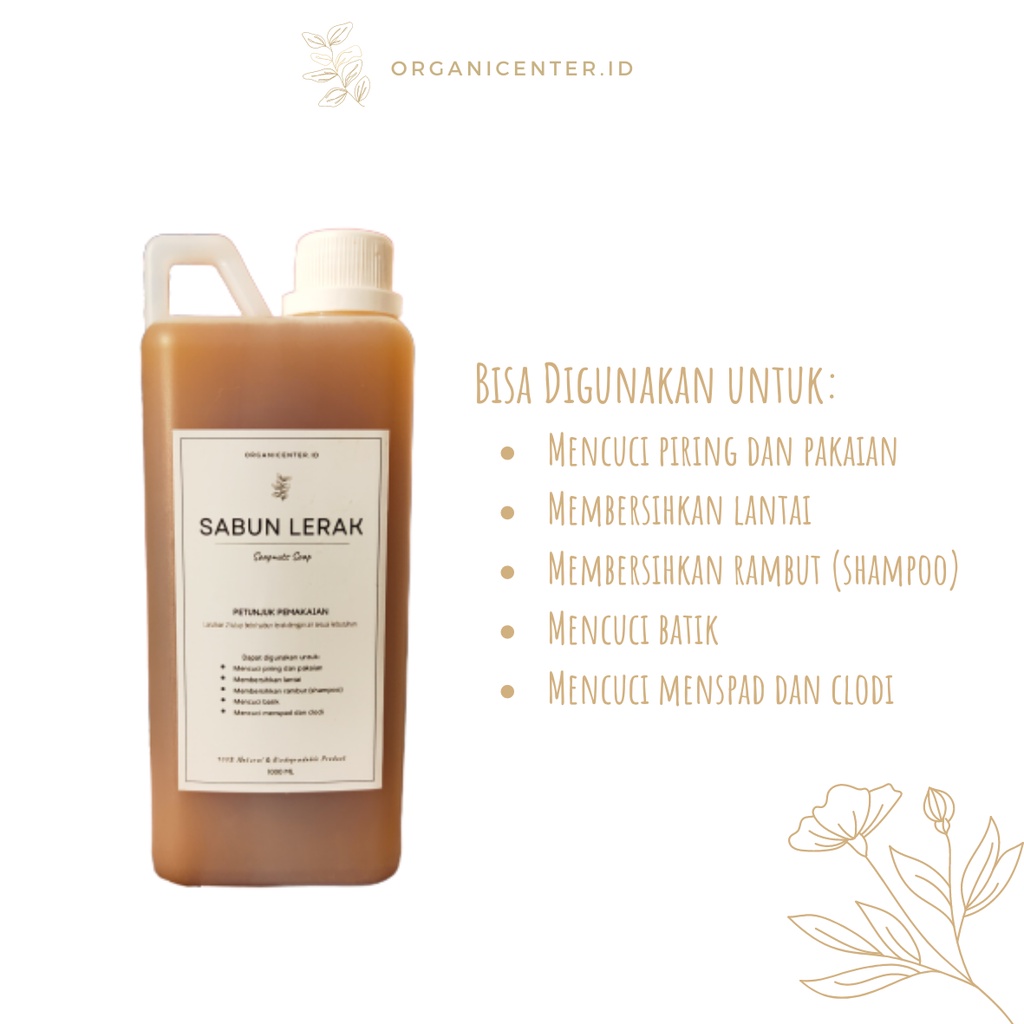 Sabun Lerak Cair 1 Liter Alami Organicenter Deterjen Cuci Piring Pakaian Bayi Batik Clodi Menspad Pel 1000 ml Zero Waste
