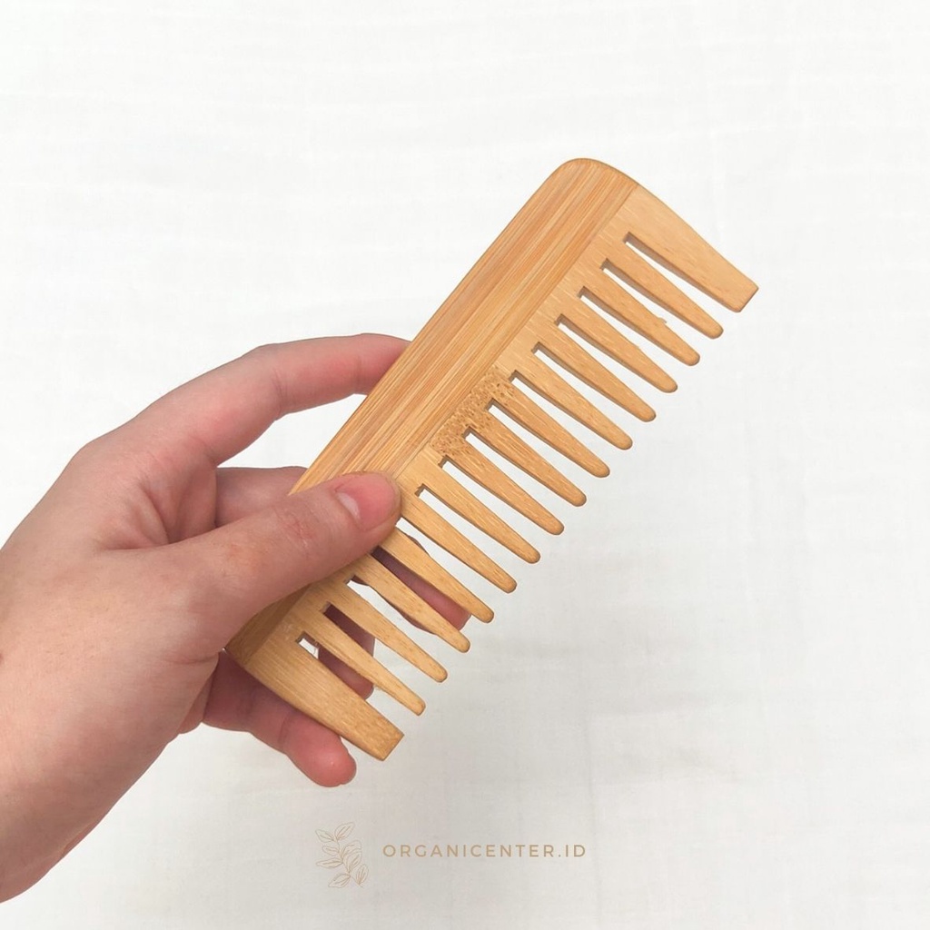 Sisir Bambu Lebar Wooden Comb Wide Tooth Ramah Lingkungan Kayu Bamboo Eco Friendly Estetik Alami Natural Terapi Pijat Kepala Rambut