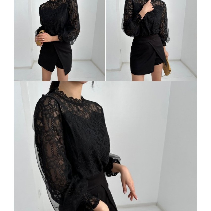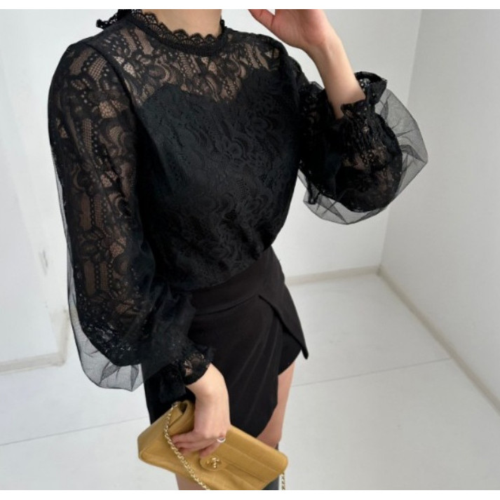 Fashion Puff Sleeve Lace Mesh Blouse for Women