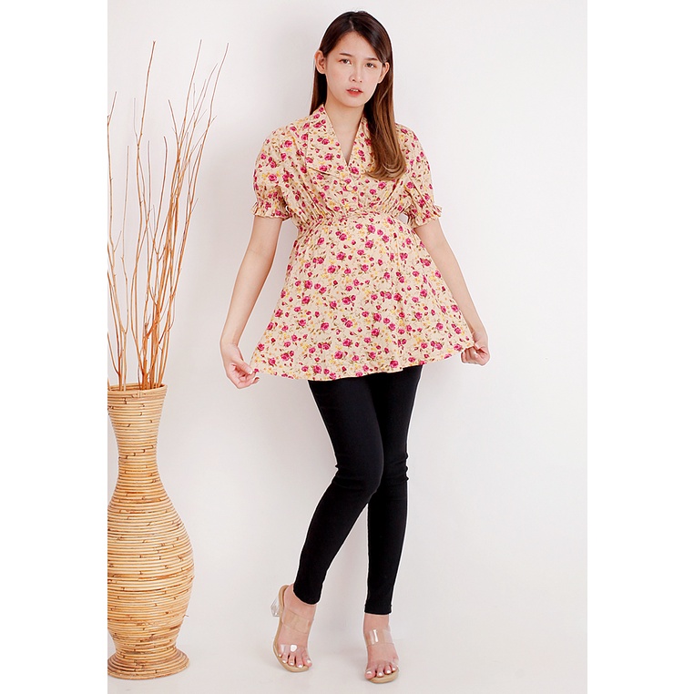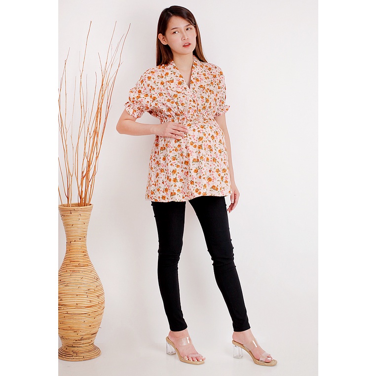 Blouse Hamil & Menyusui | Atasan Ibu Hamil Kerah Variasi Lengan Panjang/Pendek Bahan Katun Spandex Satin 8845