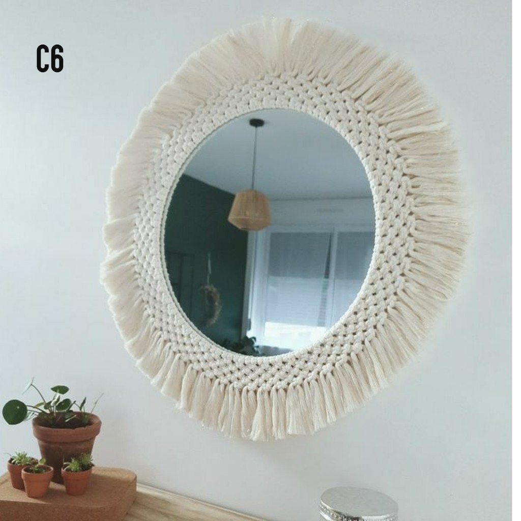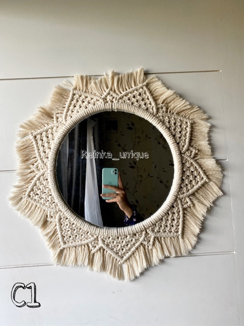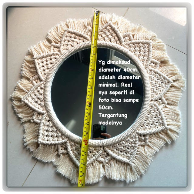 PECAH=GANTI Cermin macrame 35 & 40cm ++ rotan kaca ring bulat