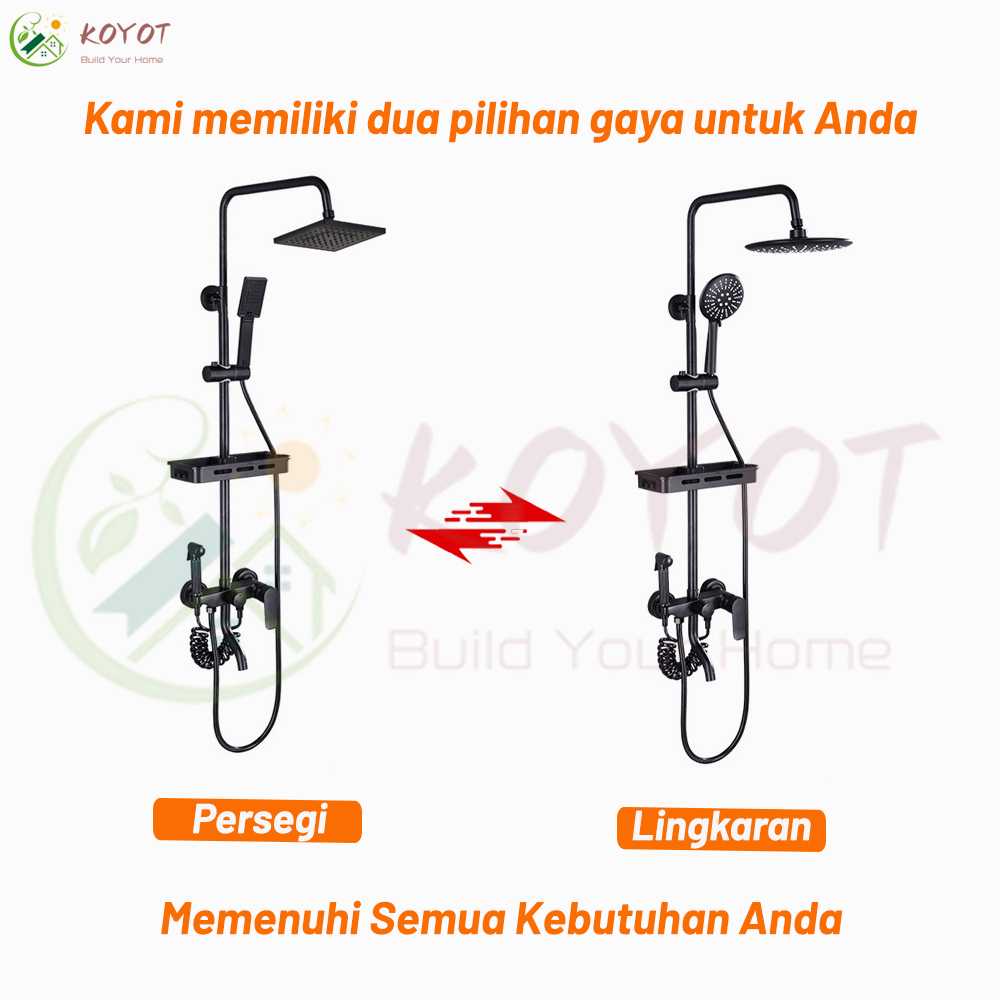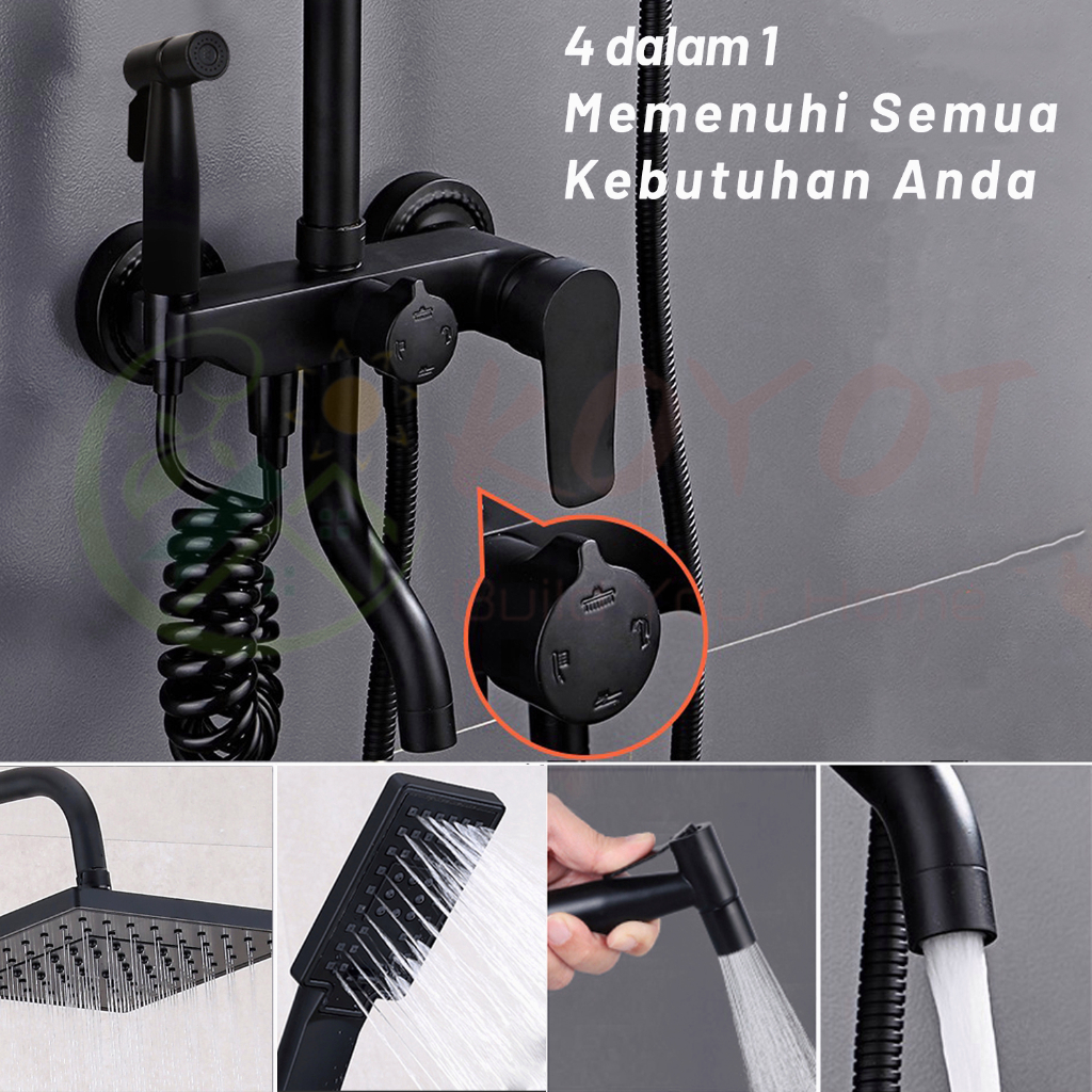 KOYOT 4 Dalam 1 Shower Kamar Mandi Full Set Panas Dingin Persegi Hitam Matte dengan Mixer Panas Dingin 4 Ways / Jet Shower / Hand Shower Mandi / Kran Panas Dingin / Kepala Shower Mandi / Tempat Sabun Shower Kamar Mandi Satu Set