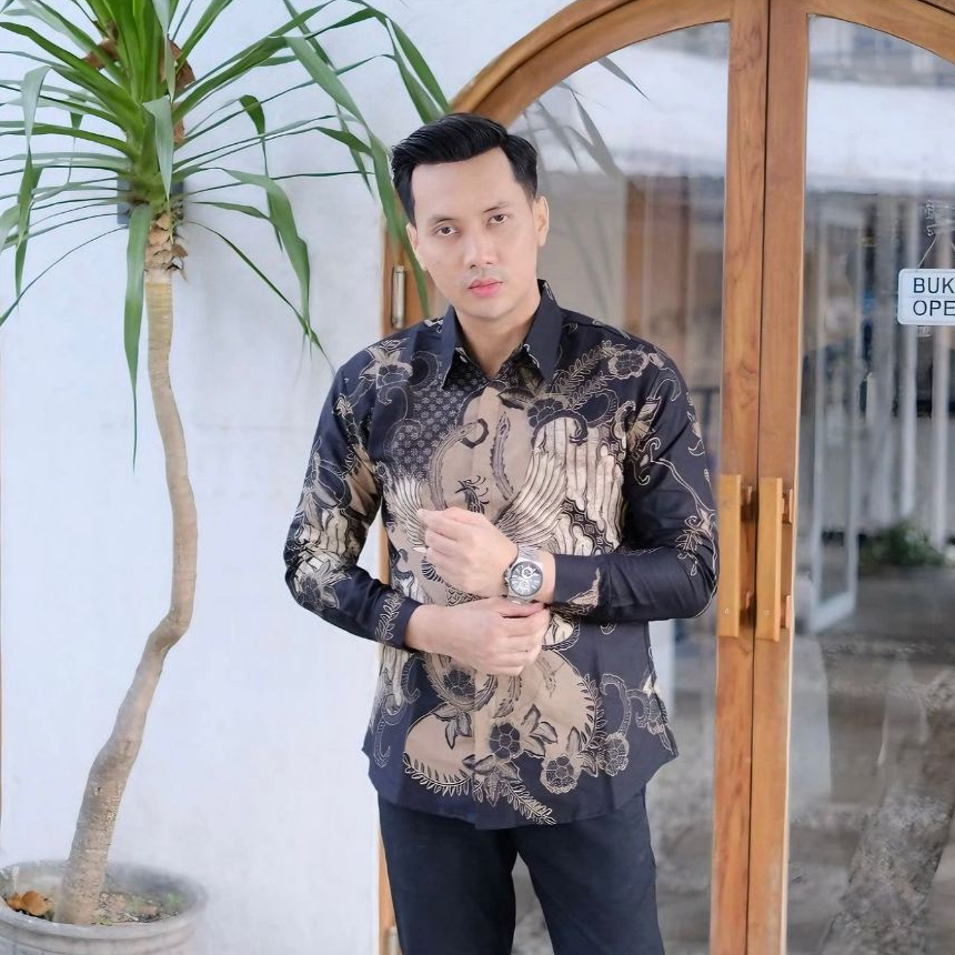 Batik pria hem batik remaja dewasa aesthetic slimfit lengan panjang katun lapis furing