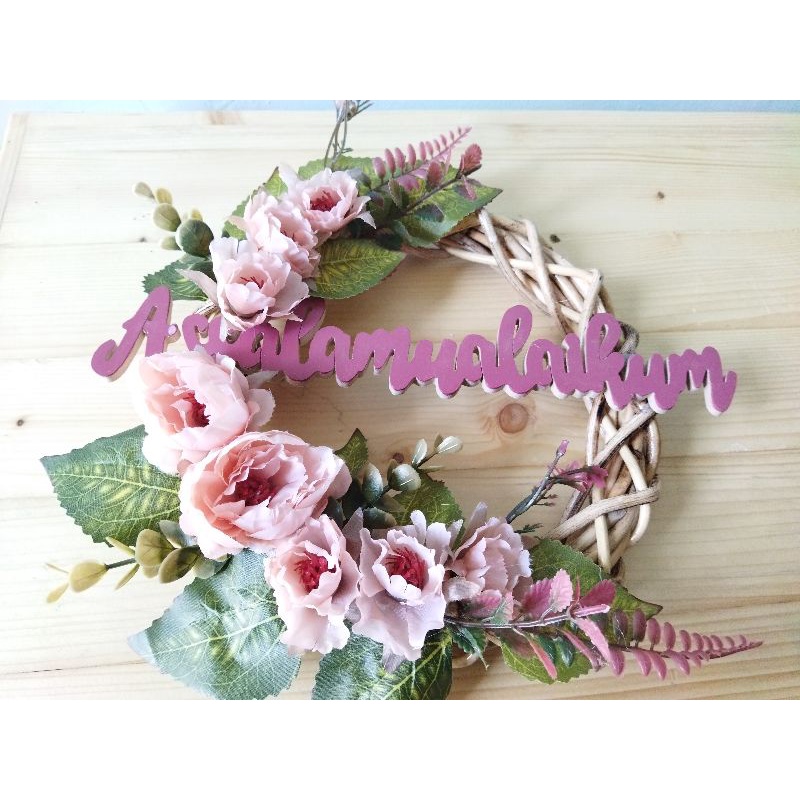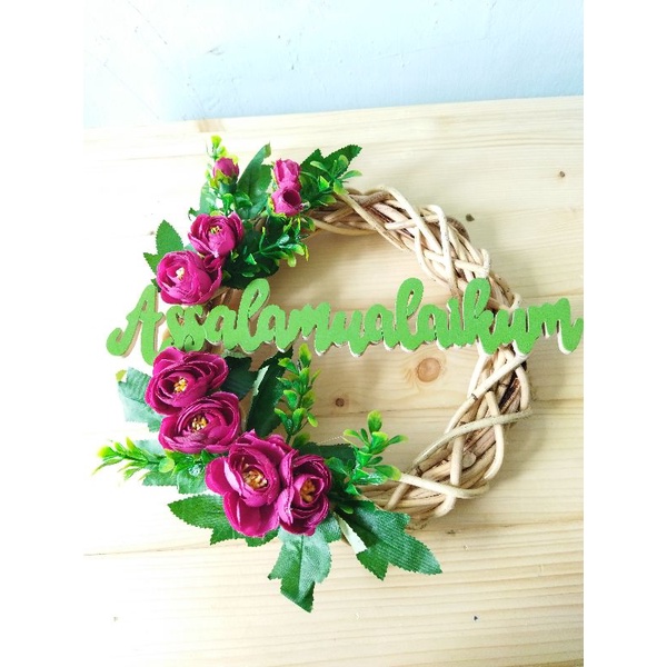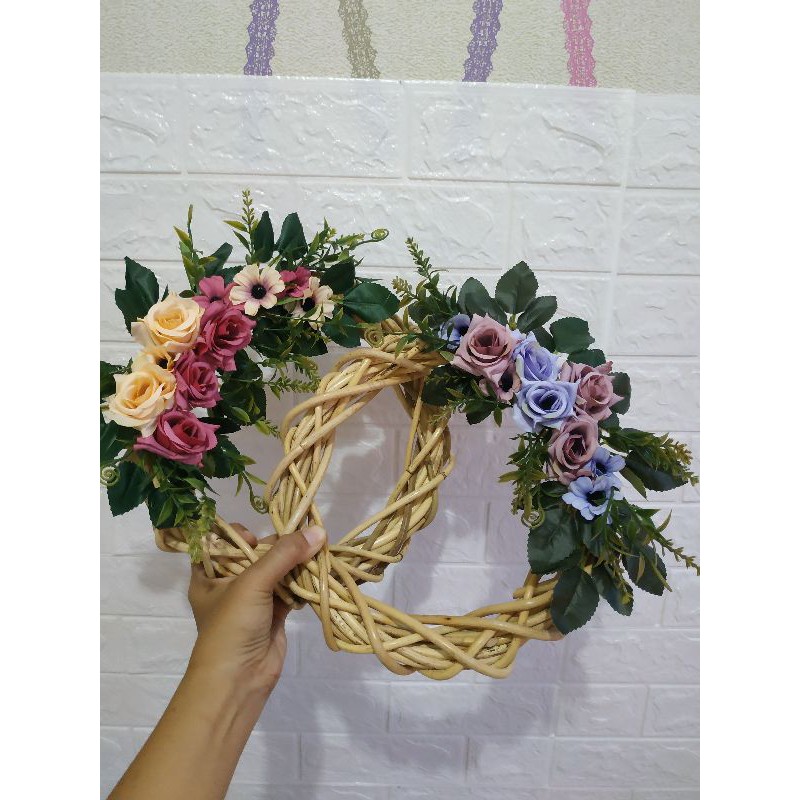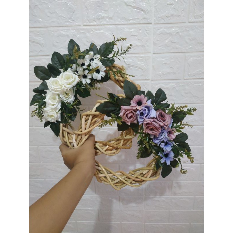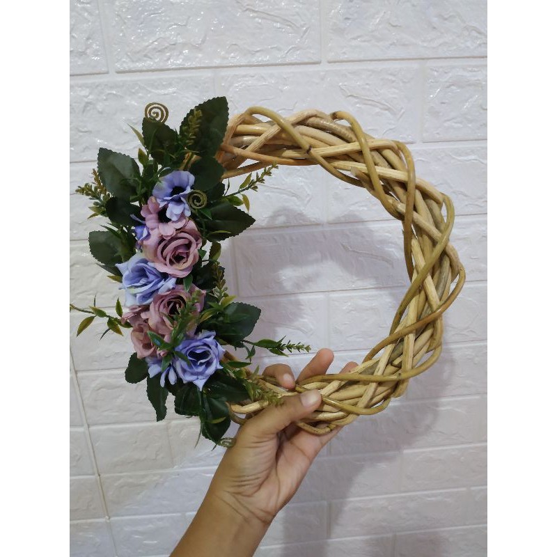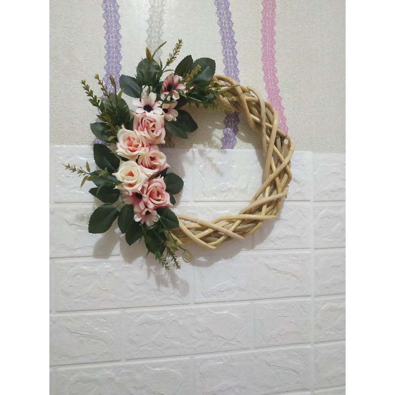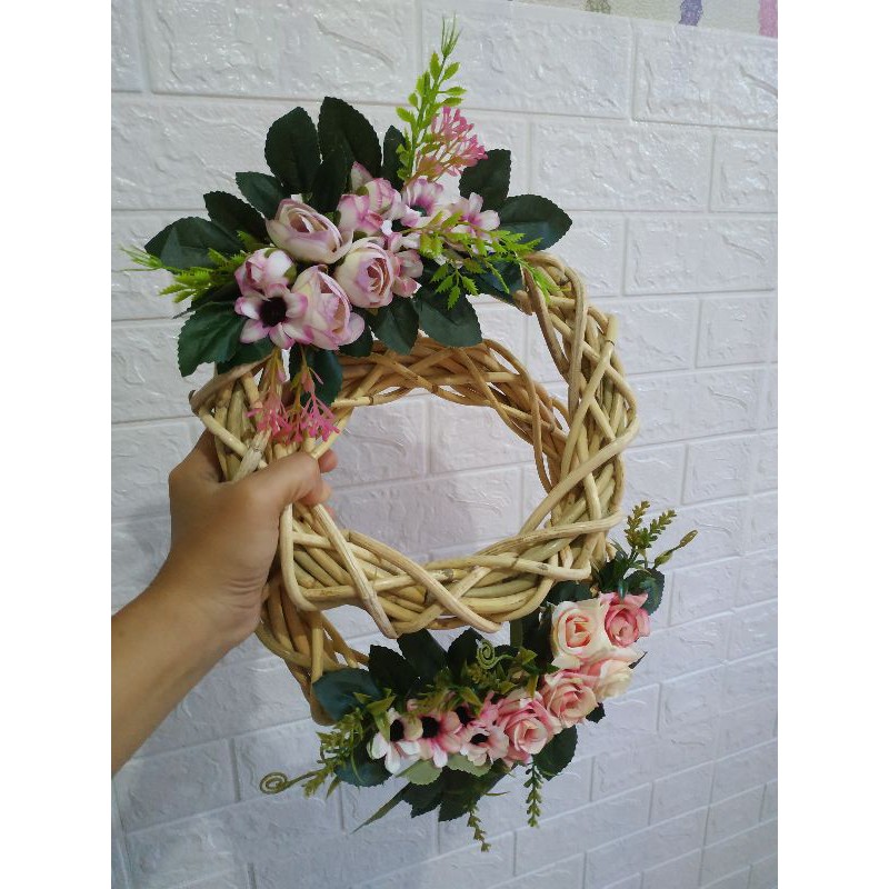 wreath flower hiasan pintu dinding Walldecor bunga hias plastik artificial ring rotan ring flower