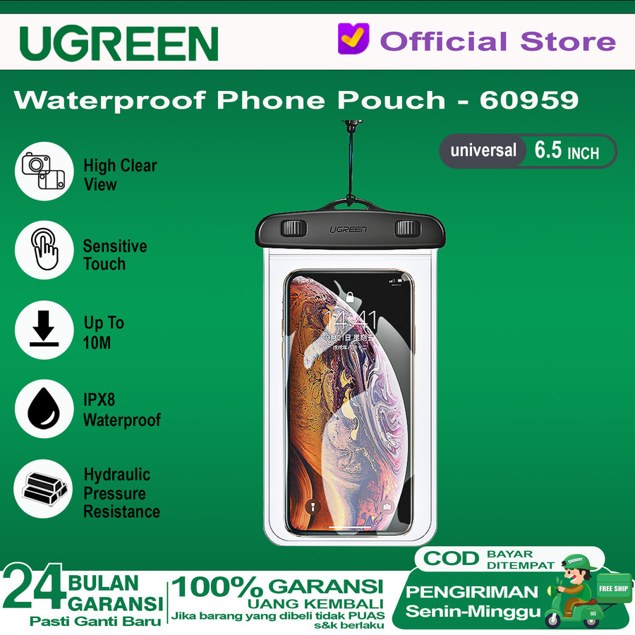 Waterproof Case HP UGREEN Sarung Pelindung HP Anti Air Universal Tahan Anti Hujan