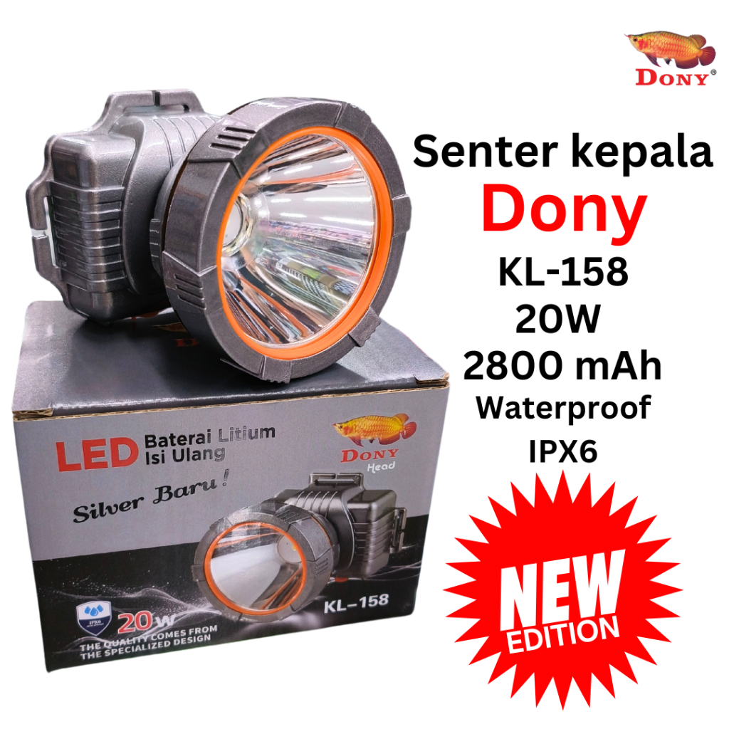 DONY Senter Kepala Dony KL 158 Silver Baru Doni Cas LED Super Terang Jarak Jauh 20 WATT 20w Murah