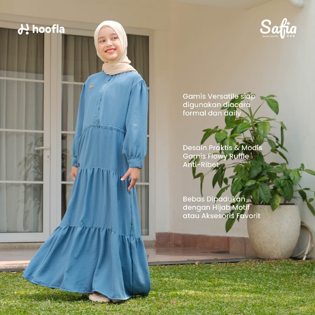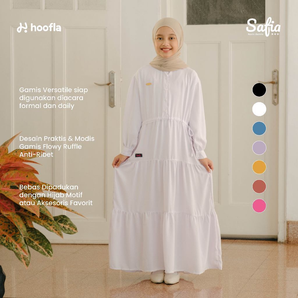 HOOFLA Gamis Anak Perempuan Muslimah Usia 3-12 Tahun Safia Basic Baju Dress Lebaran Terbaru 2026