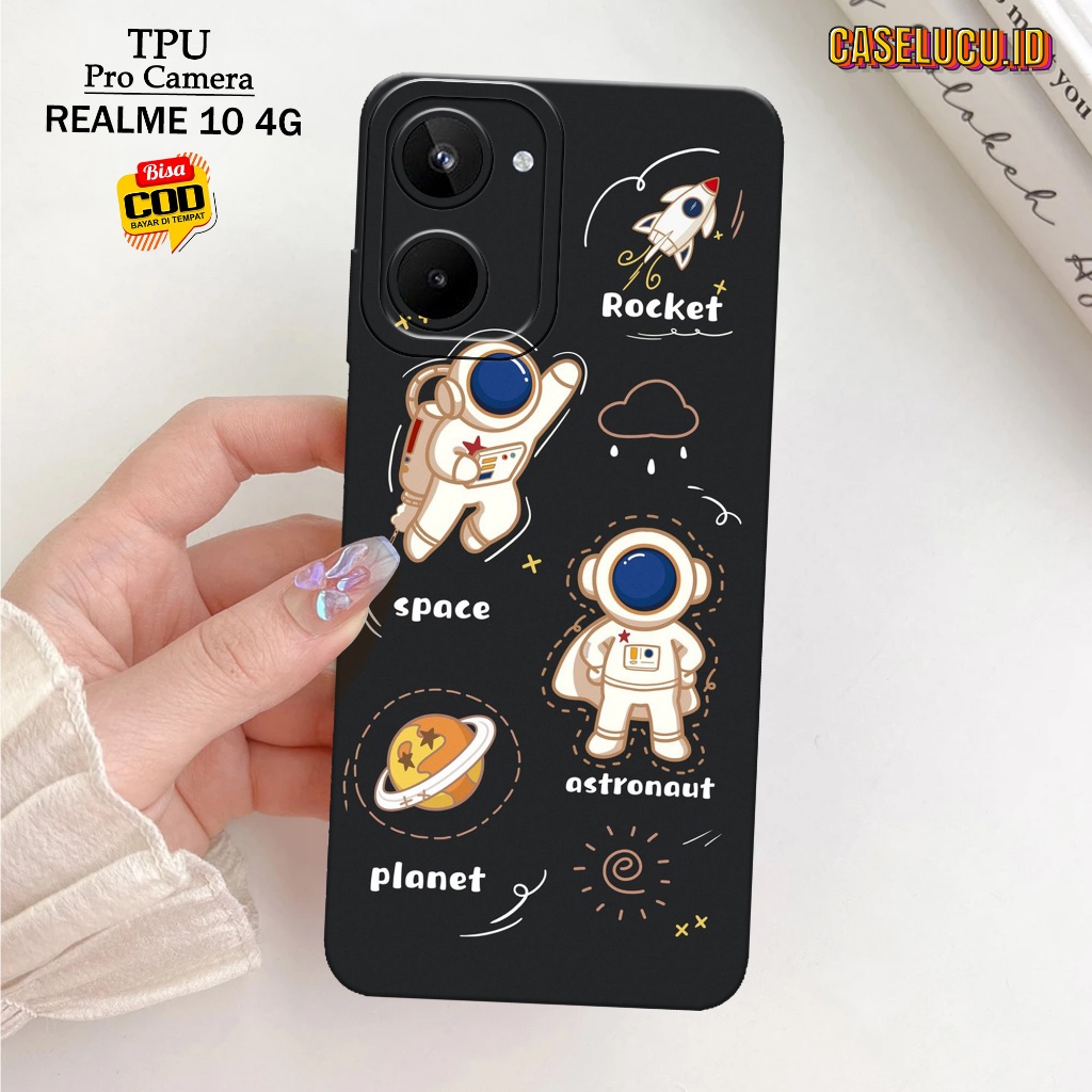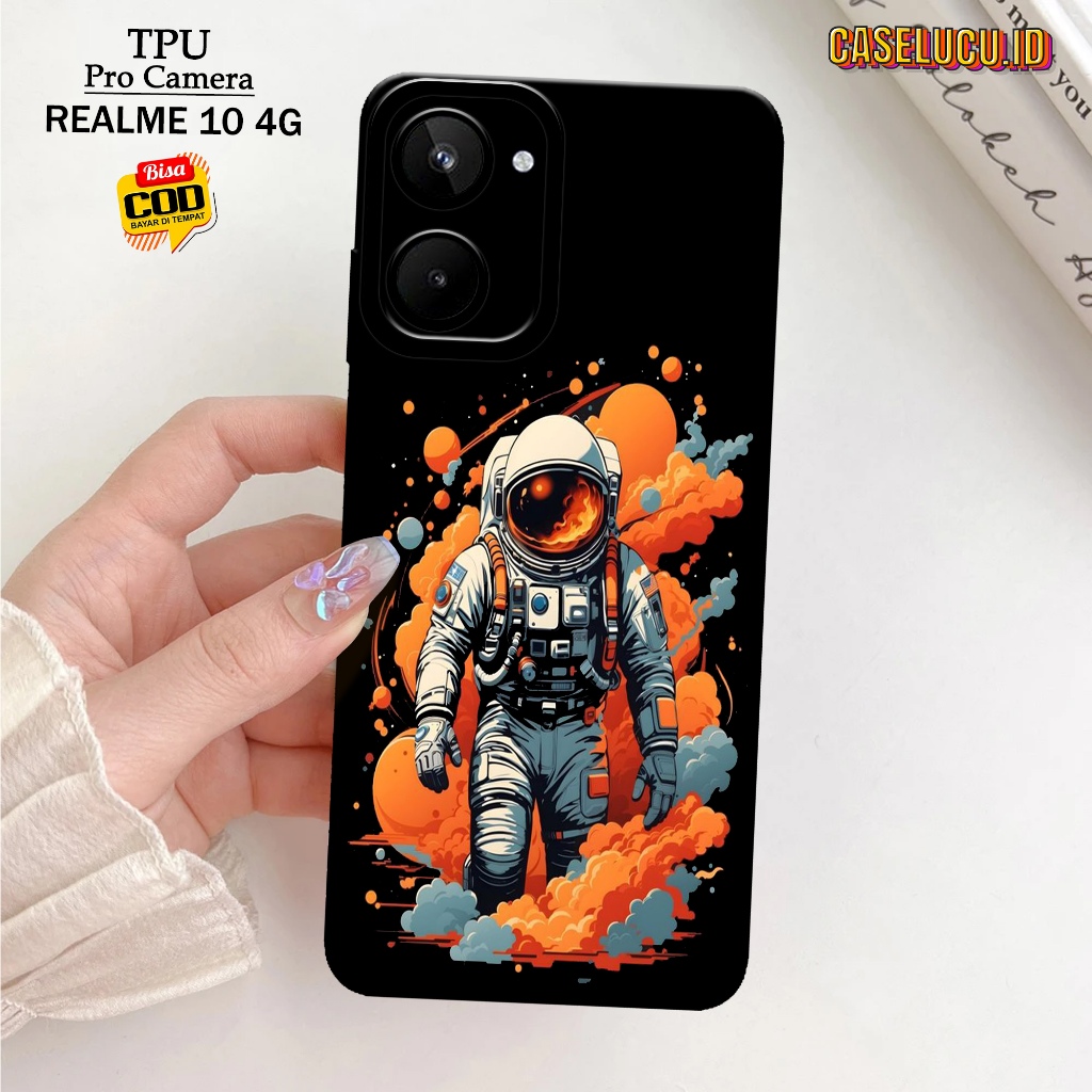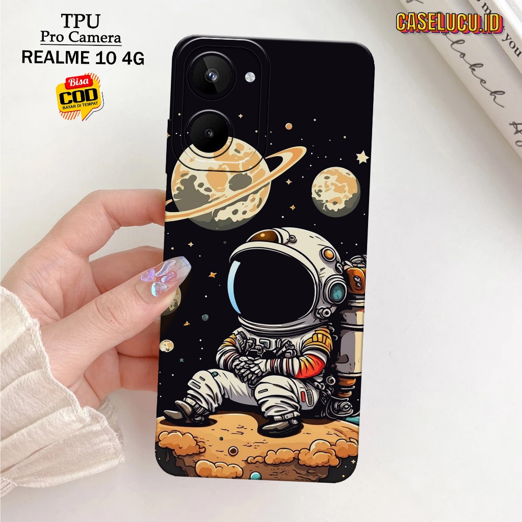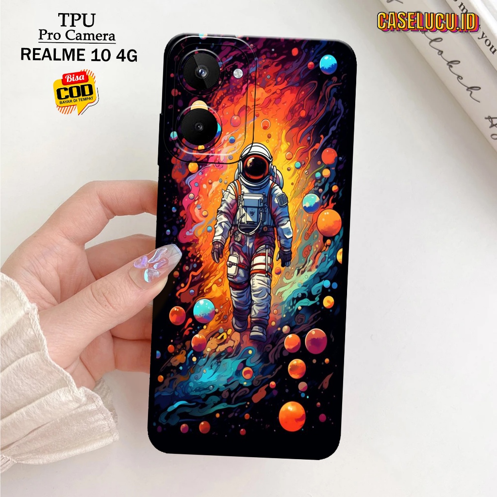 Casing Hp Realme 10 4G Terbaru - Fashion Case Astronot - Case Hp Realme 10 4G - Softcase Hp Realme 10 4G - Kesing Hp Silikon Hp Case Lucu Case Mewah Mika Hp Aksesoris Handphone Motif Cewe / Cowo Premium 3D Pro Camera