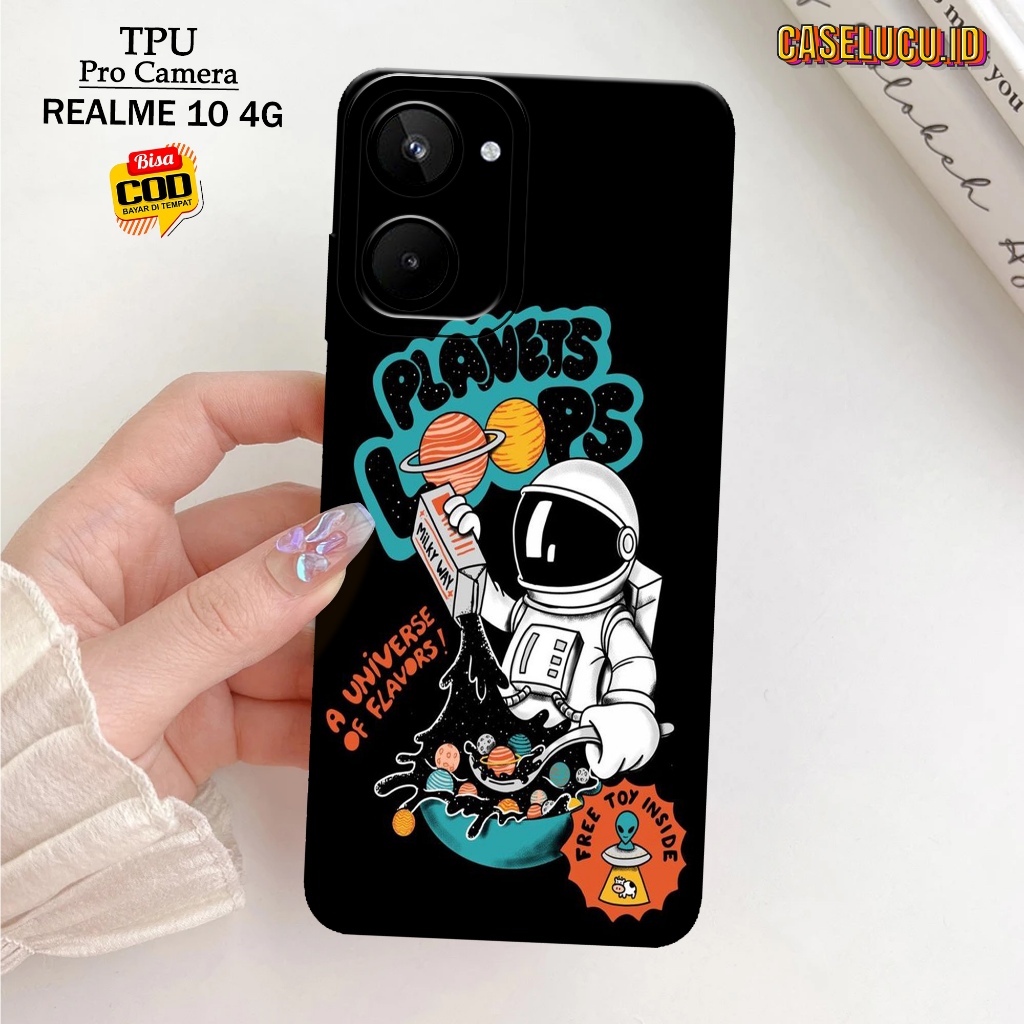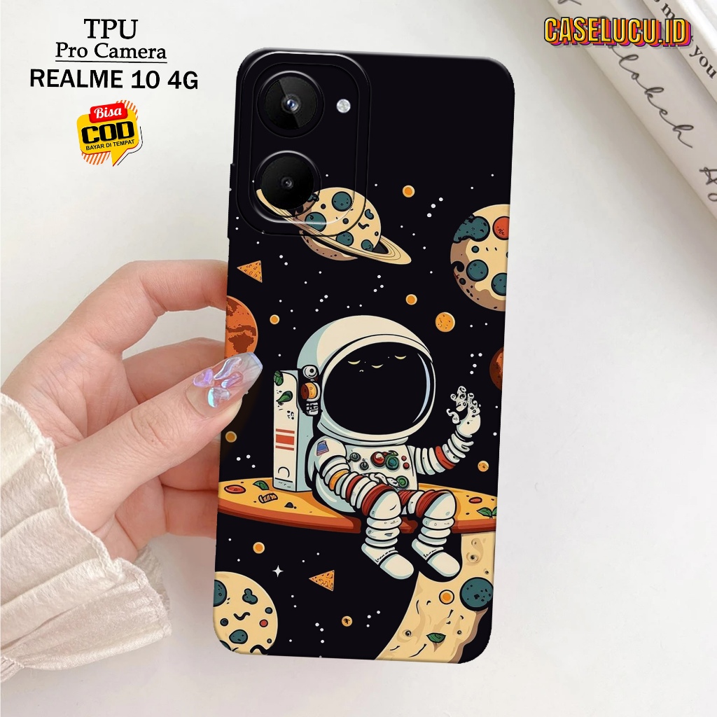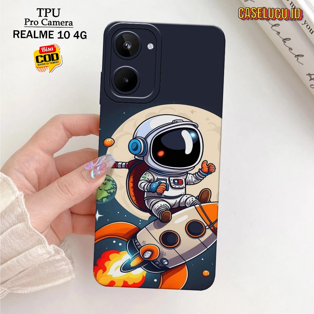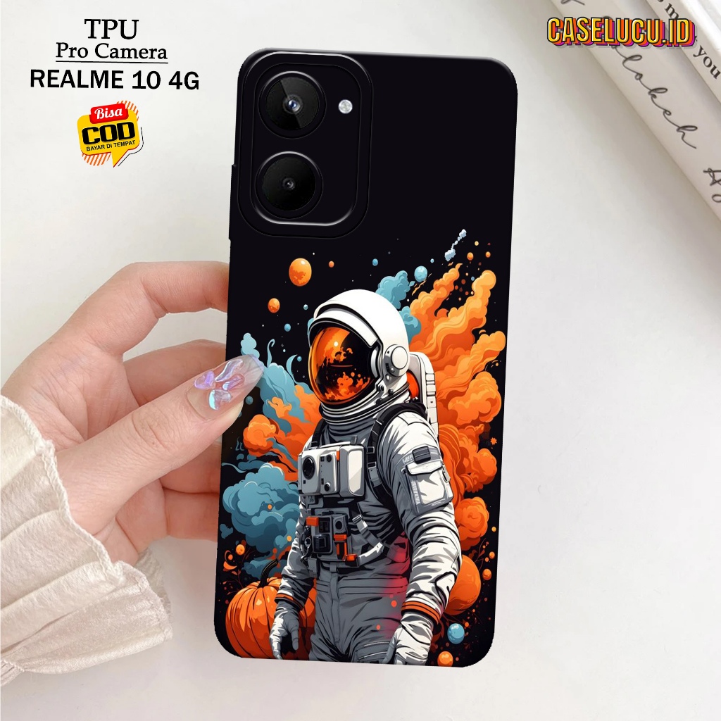 Casing Hp Realme 10 4G Terbaru - Fashion Case Astronot - Case Hp Realme 10 4G - Softcase Hp Realme 10 4G - Kesing Hp Silikon Hp Case Lucu Case Mewah Mika Hp Aksesoris Handphone Motif Cewe / Cowo Premium 3D Pro Camera