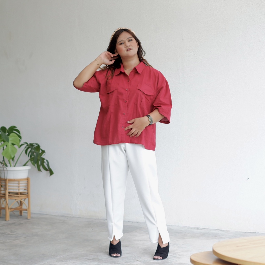 Lucy Boxy oversize shirt | fabsstore plussize bigsize kemeja baju cewek kue linen adem