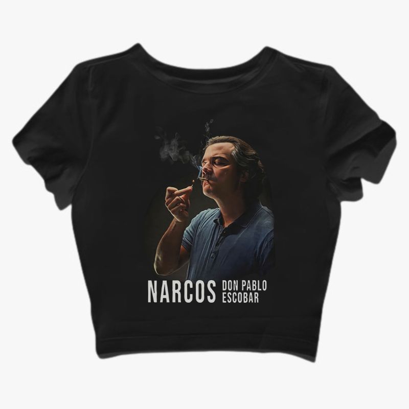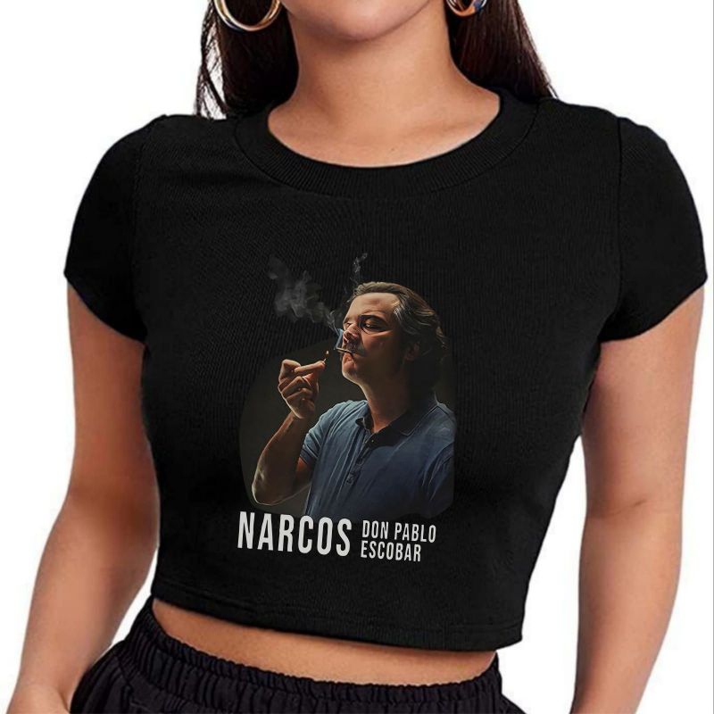 Baby Tee NARCOS DON PABLO ESCOBAR Y2k Style Crop Tee hitam crop top putih rap tees kaos vintage
