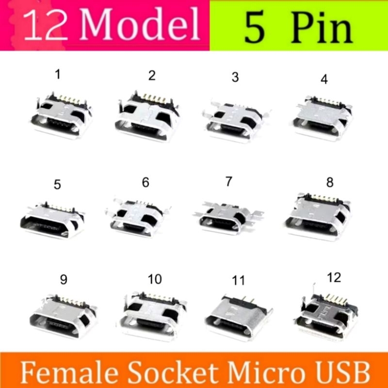 12Pcs Model Soket Micro USB 5 Pin Type B Female Berbagai Model Conector Charger HP