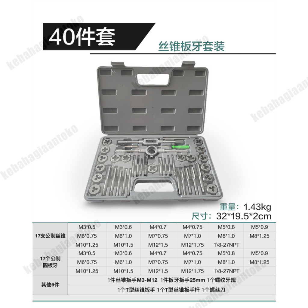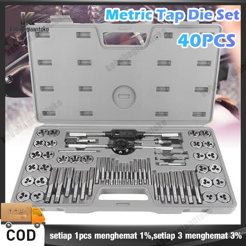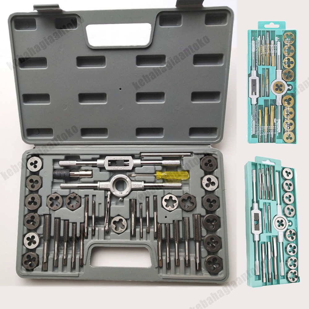 Tap And Dies Set 40 pcs Handtap Alat Senai Tap Ulir Baut Set/Ulir Sekrup Metrik Keran Kunci Pas Dies DIY Kit dengan Case Rumah Tangga Multifungsi Alat Tangan