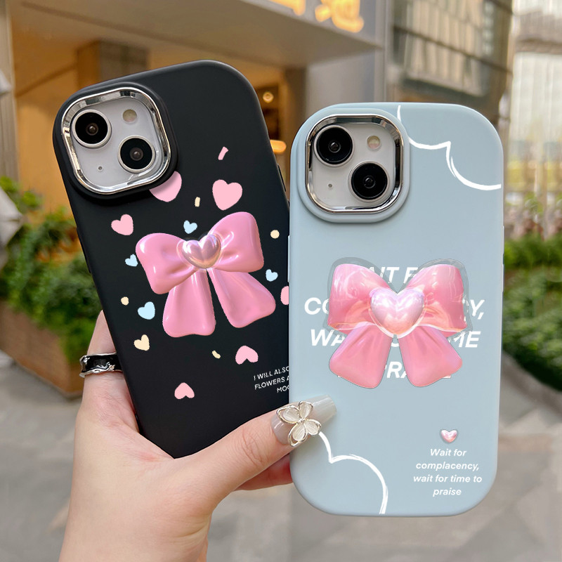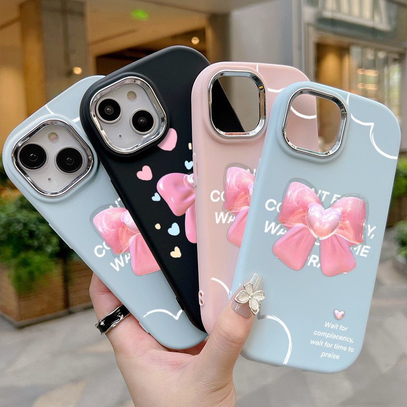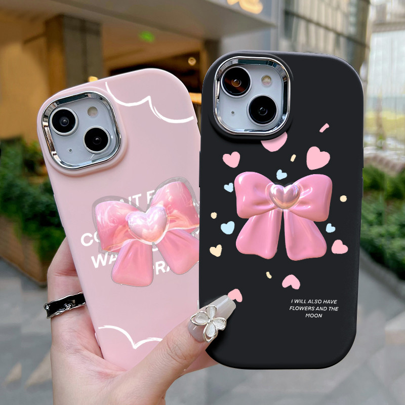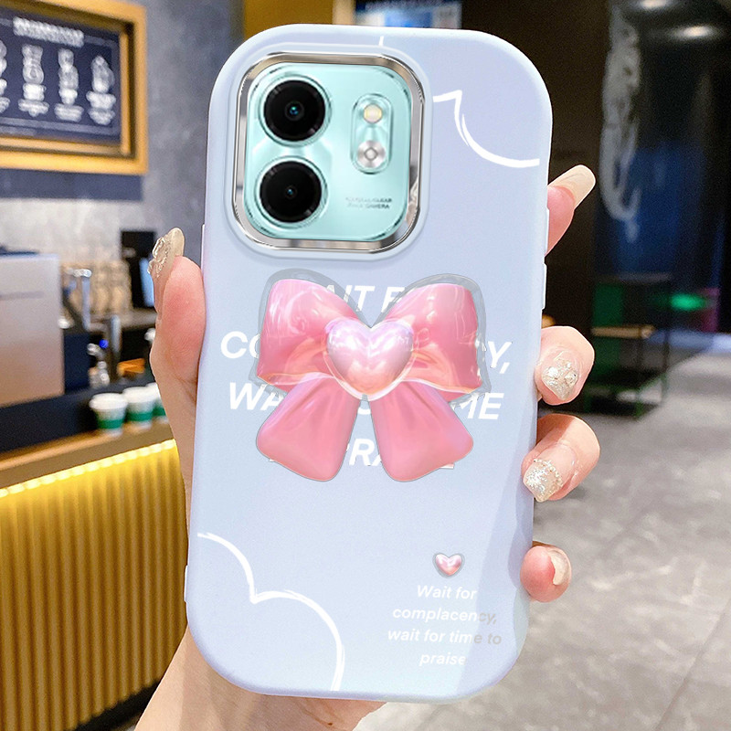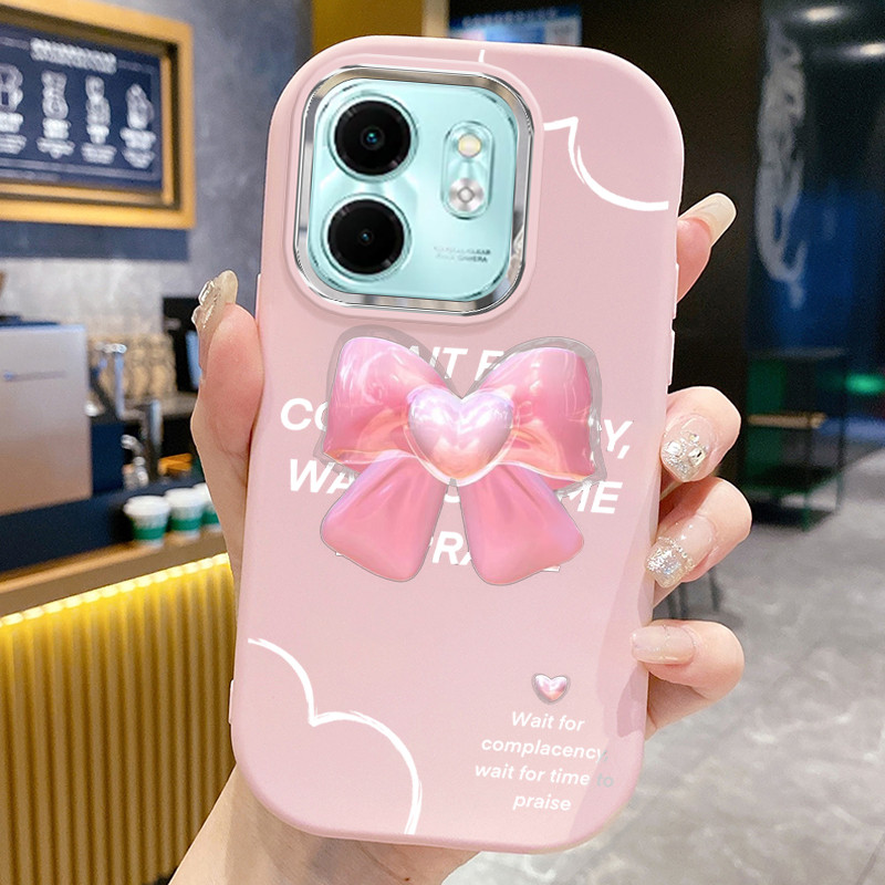 Casing Hp Untuk Infinix Smart 9 Smart 9 HD Hot 50 Hot 50i Hot 50 Pro Plus Case Pita hati ins Gadis muda Pink Solid Color Phone Cover Kasing Silikon Softcase Cesing bulat gemu Edge kesing