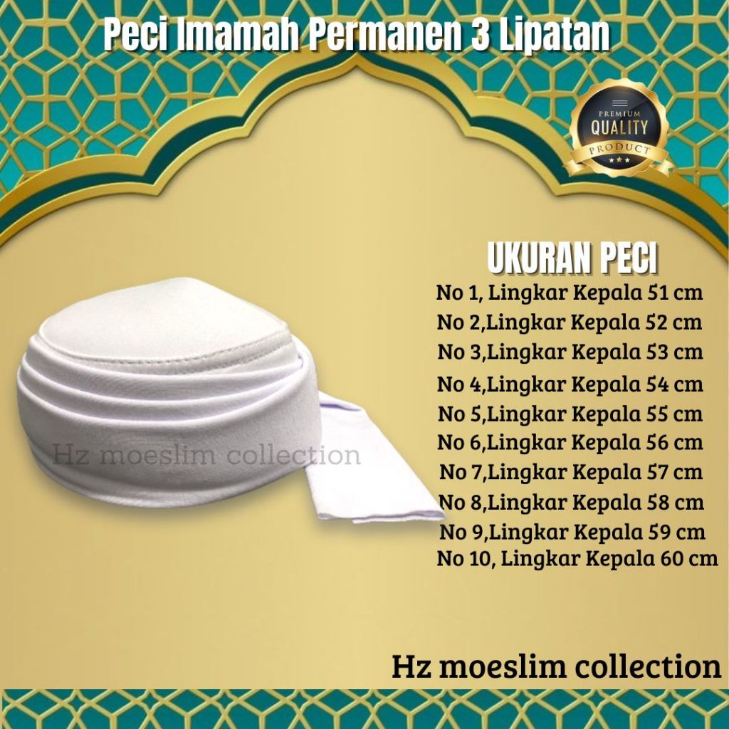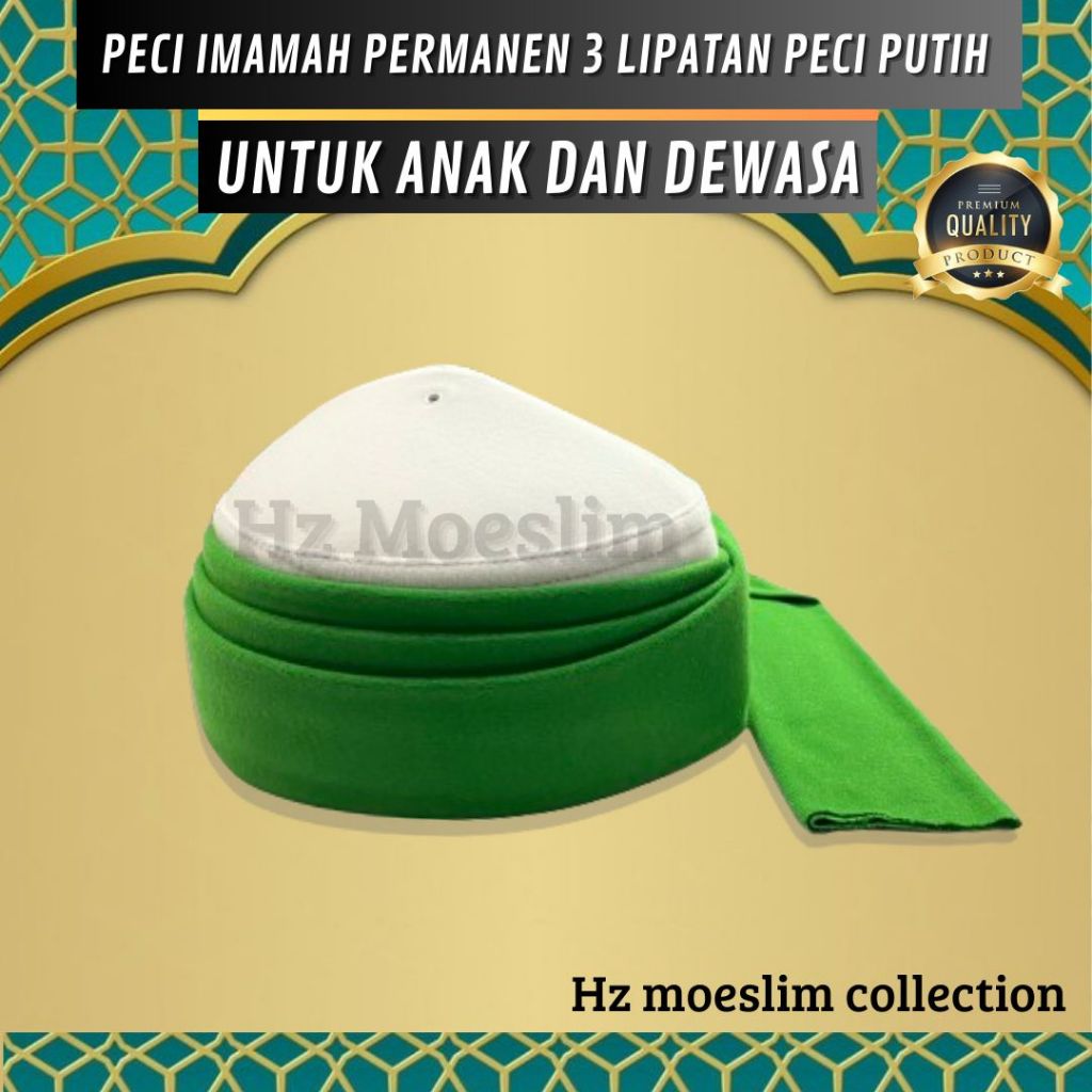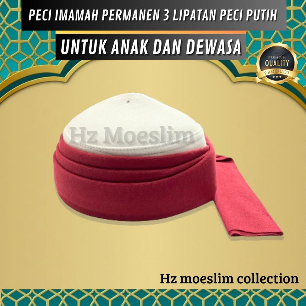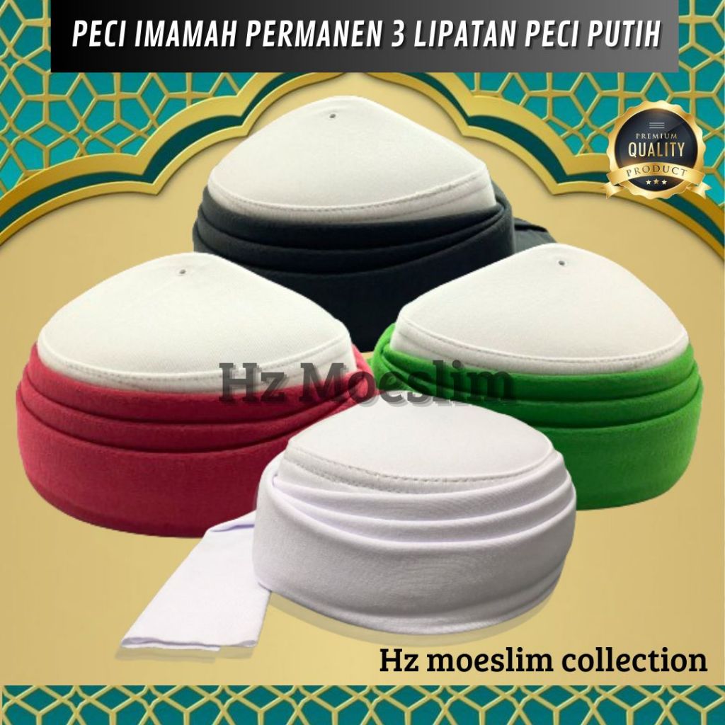 Peci Imamah Permanen 3 Lipatan Peci Dasar Putih Instan Langsung Pakai