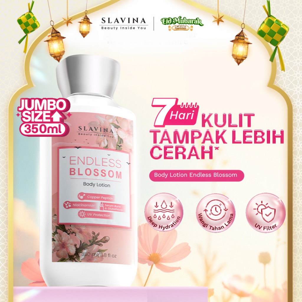 SLAVINA Body Lotion Endless Blossom by Nagita Slavina 350ML – Handbody Whitening & Body Serum Pemutih Badan, Tone Up Moisturizer Wangi Parfum Bunga Elegan Niacinamide Glutathione Melembapkan Kulit Cerah Lembut
