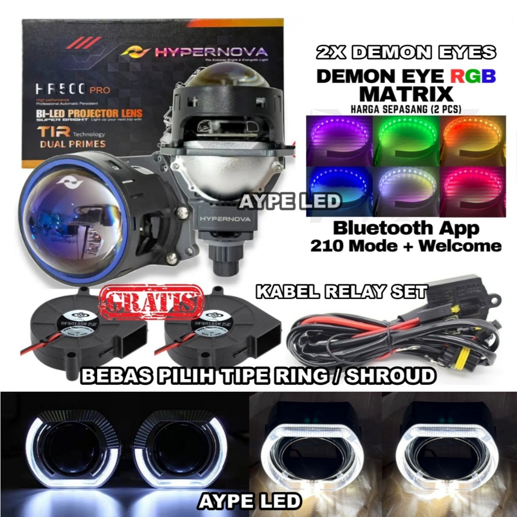 Paket Hemat Double Biled HYPERNOVA HR500 PRO 3 inch Double Bluelens 80 Watt Set Lengkap Sepasang