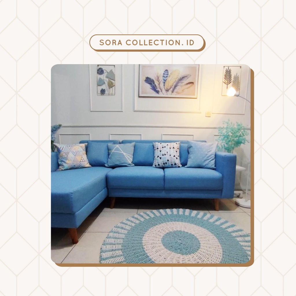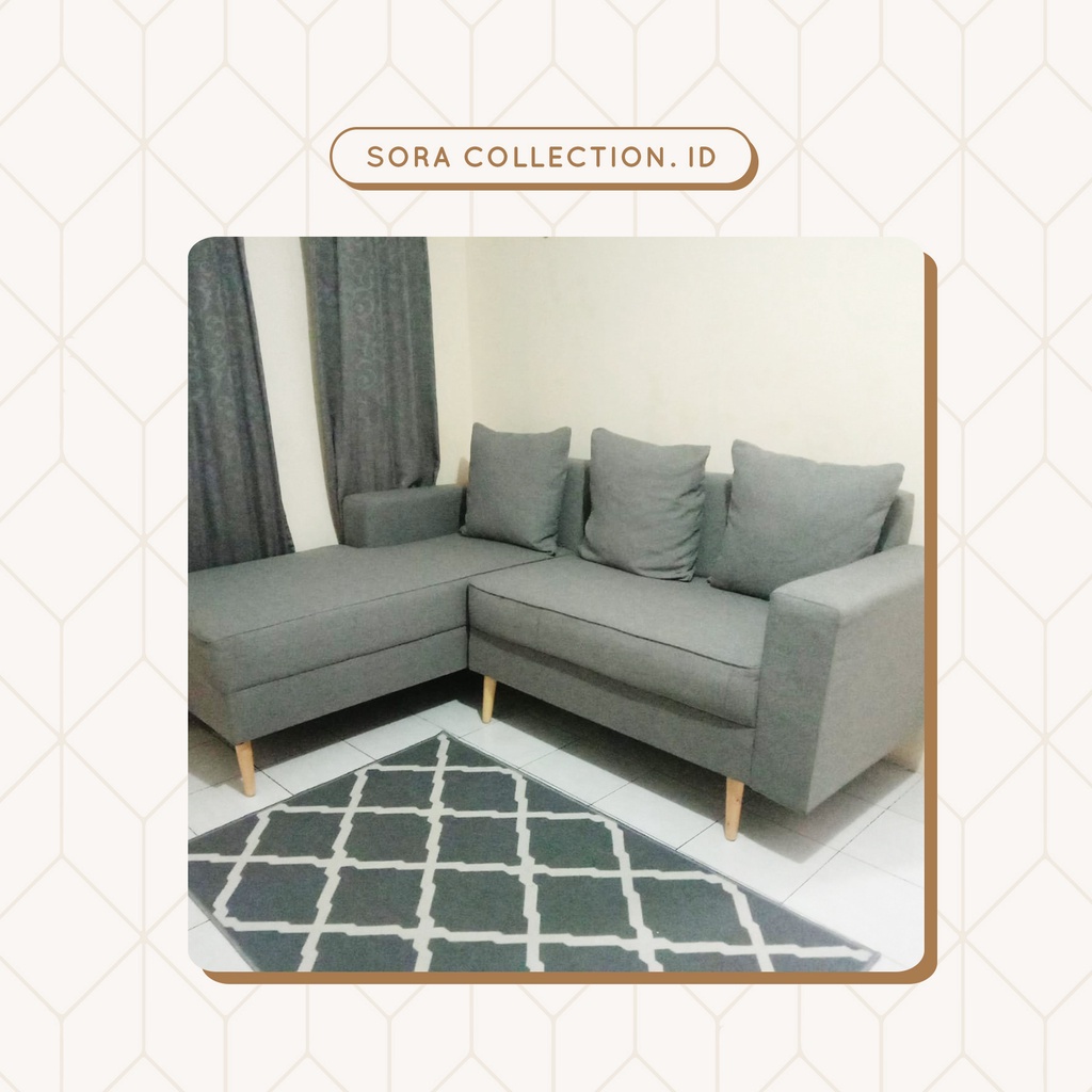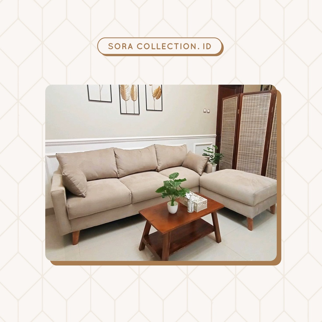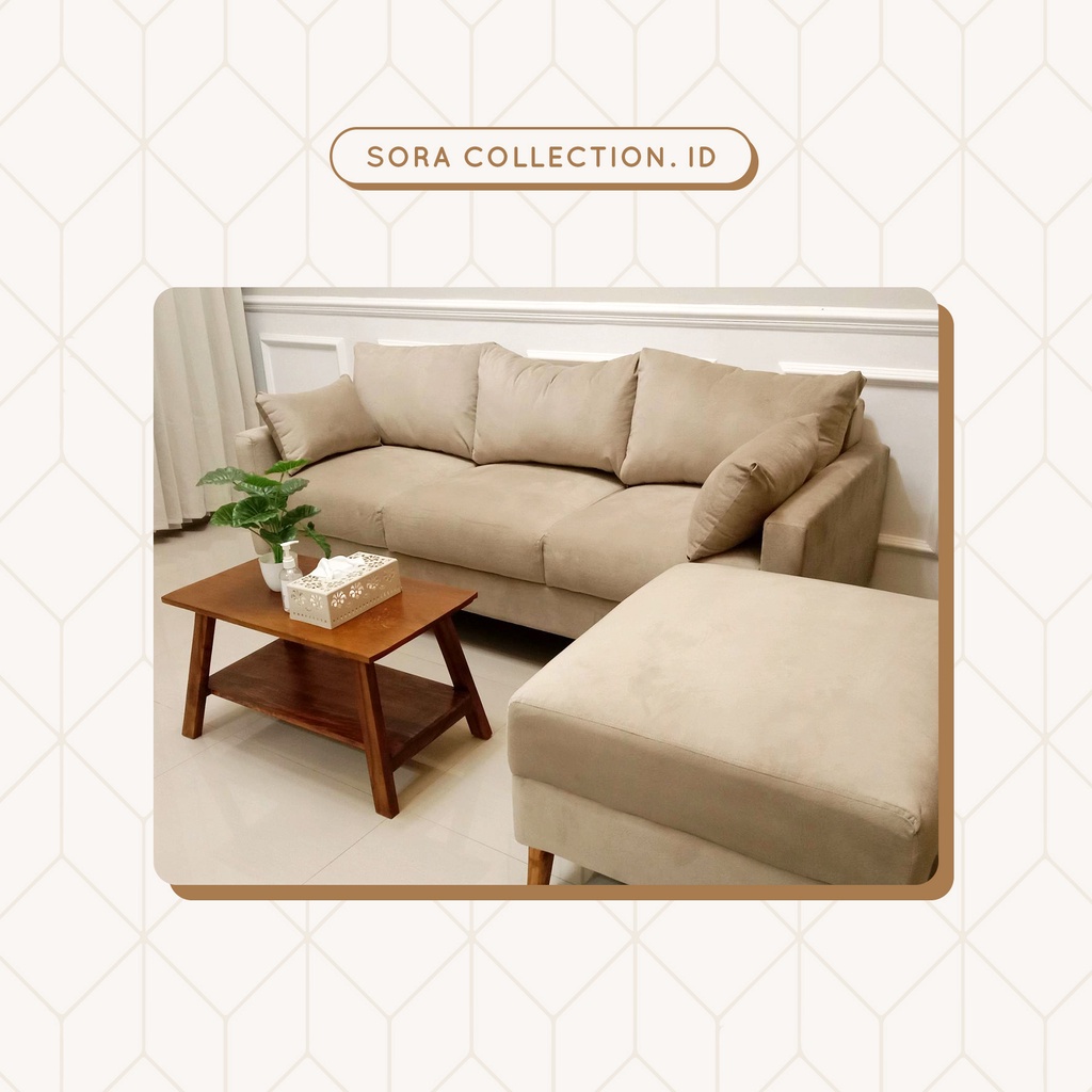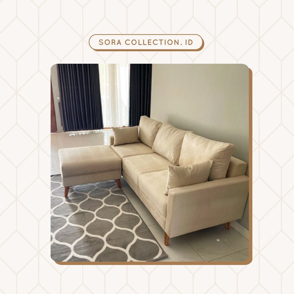 Sofa L Retro Minimalis Scandinavian Bahan Beludru ( Kain Midili ) TANPA MEJA
