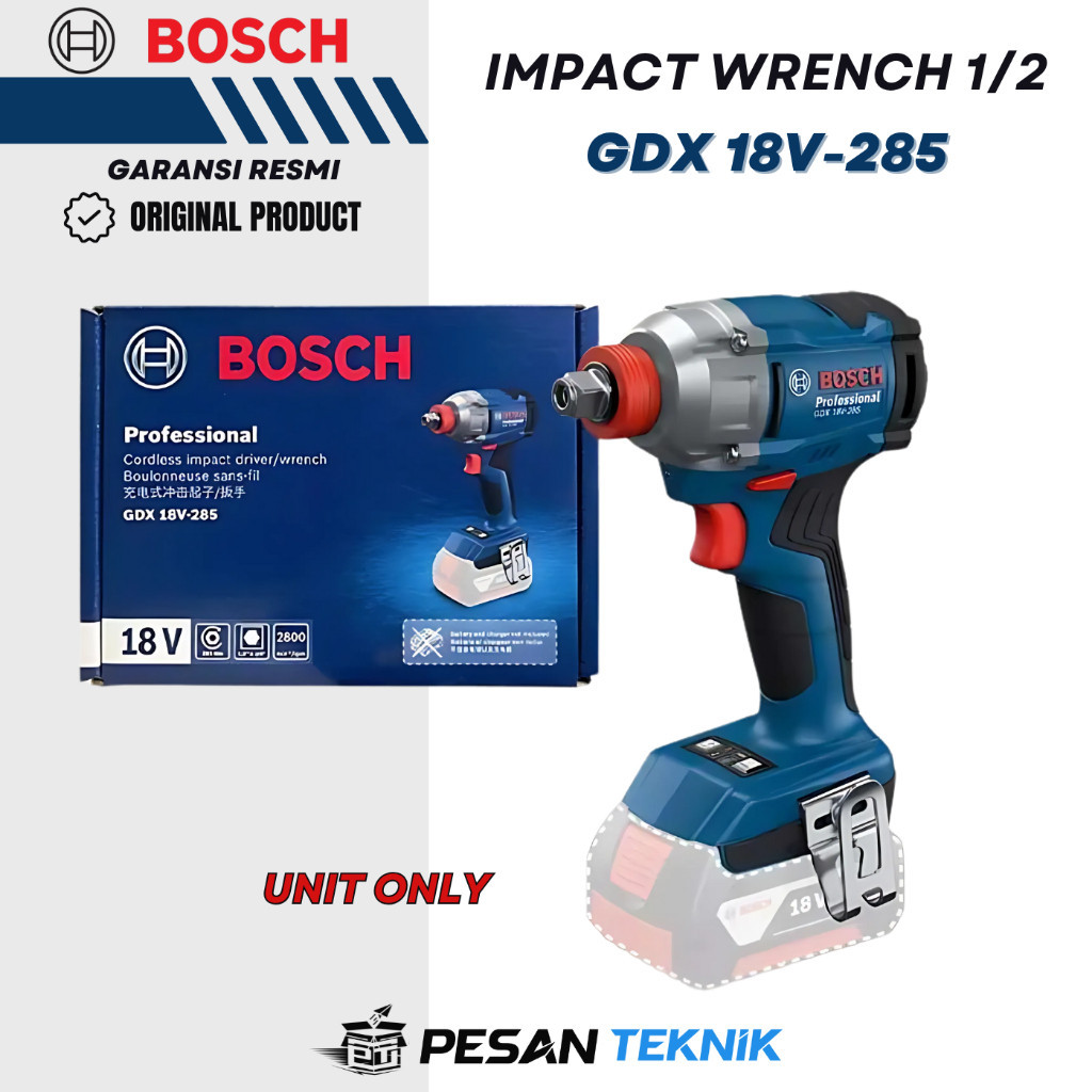 BOSCH GDX 18V-285 Mesin Pembuka Baut Baterai 18V Brushless Impact Driver & Wrench 285NM GDX 18V 285
