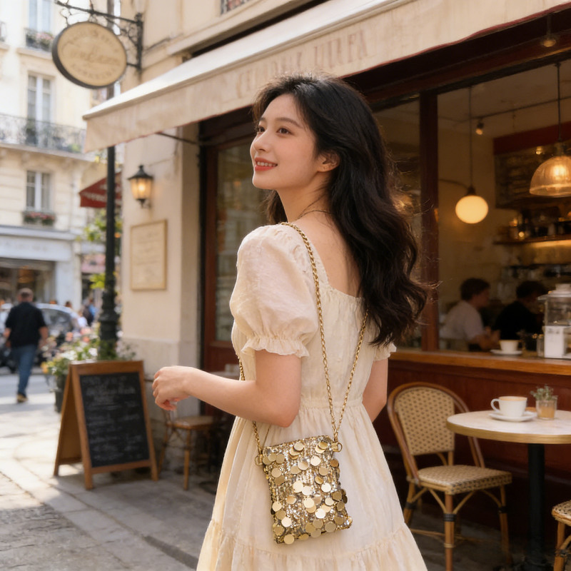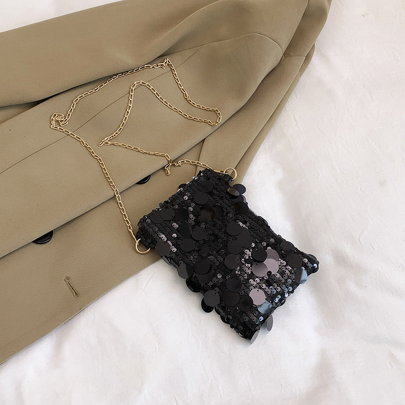 2026 Tas Selempang Mini Wanita Dengan Hiasan Sequins Berkilau, Desain Kotak Kecil Untuk HP, Tali Rantai, Gaya Fashion Unik Dan Stylish Tas Selempang Tas Serut Tas Fashion Tas Wanita