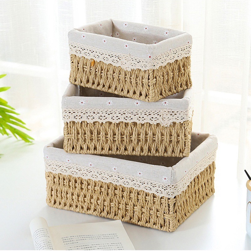 keranjang rotan Penyimpanan Box/Keranjang Penyimpanan Keranjang Makanan Ringan Kotak/Penyimpanan Kosmetik Kotak