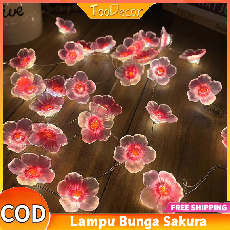 3/4/5M USB Lampu Bunga Sakura Liburan Pernikahan Lampu Bunga Sakura String Kamar Tidur Lentera Kecil
