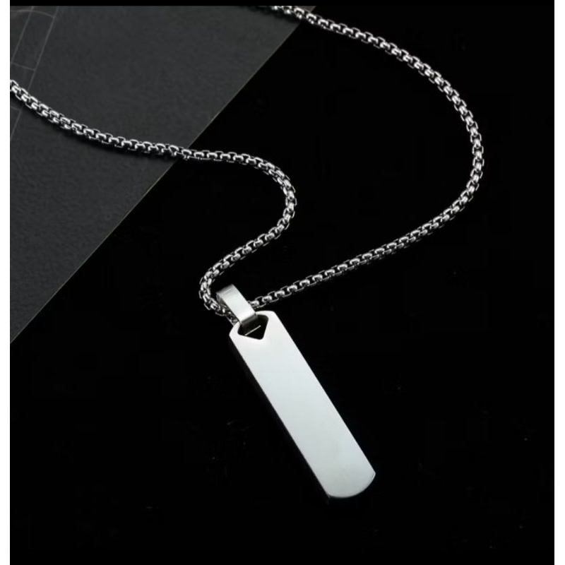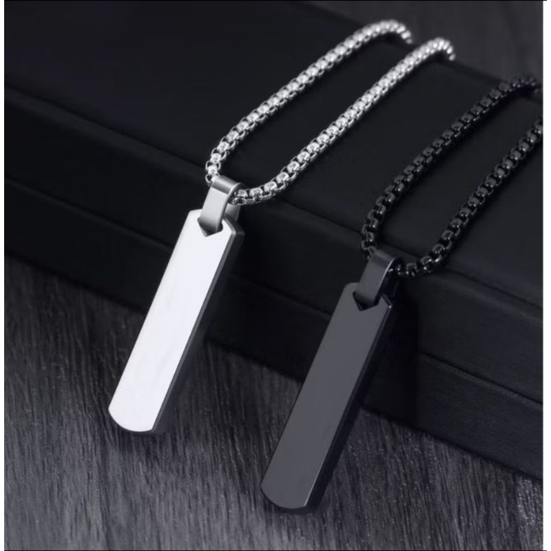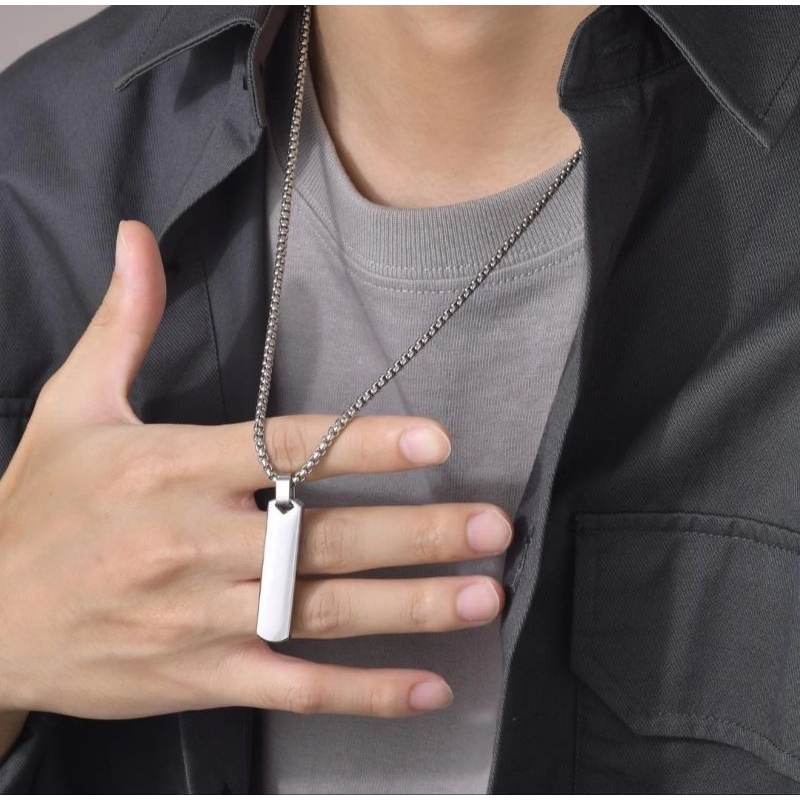 Kalung Titanium Pria Keren Liontin Kotak Terbaru Anti Karat