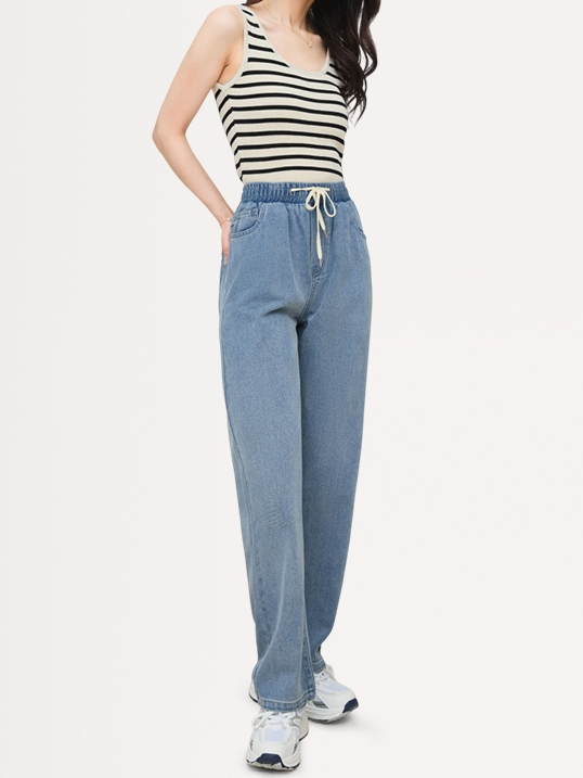 Celana jeans longgar wanita/jeans karet elastis/jeans wanita pinggang tinggi/gaya Korea