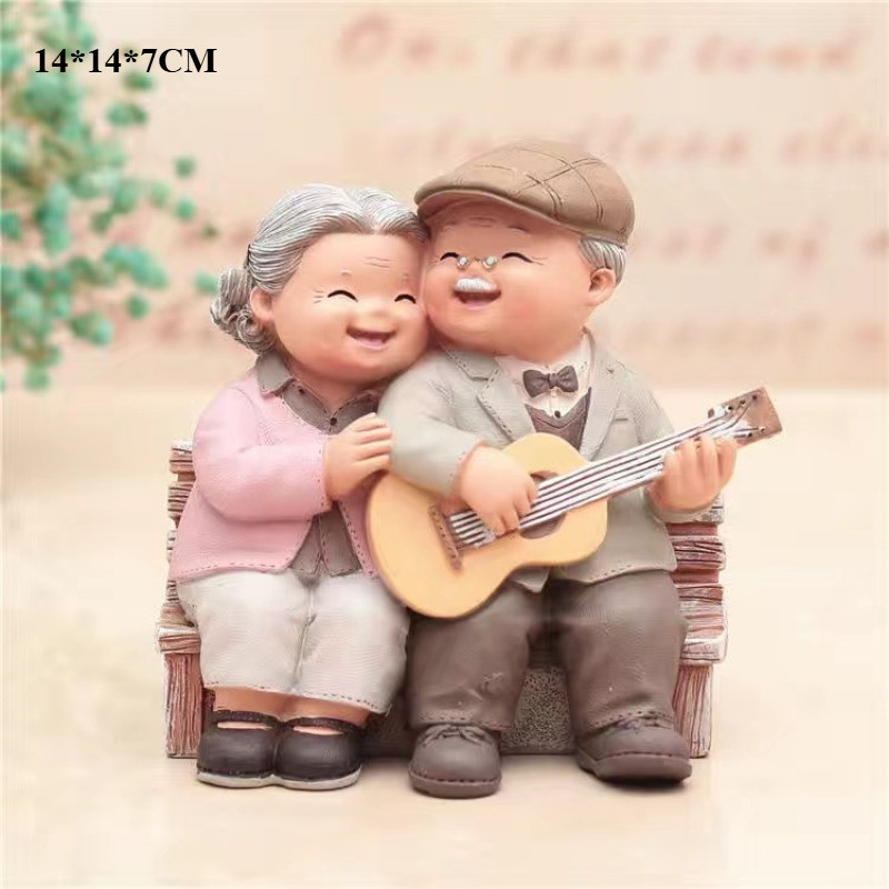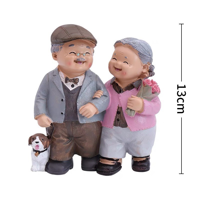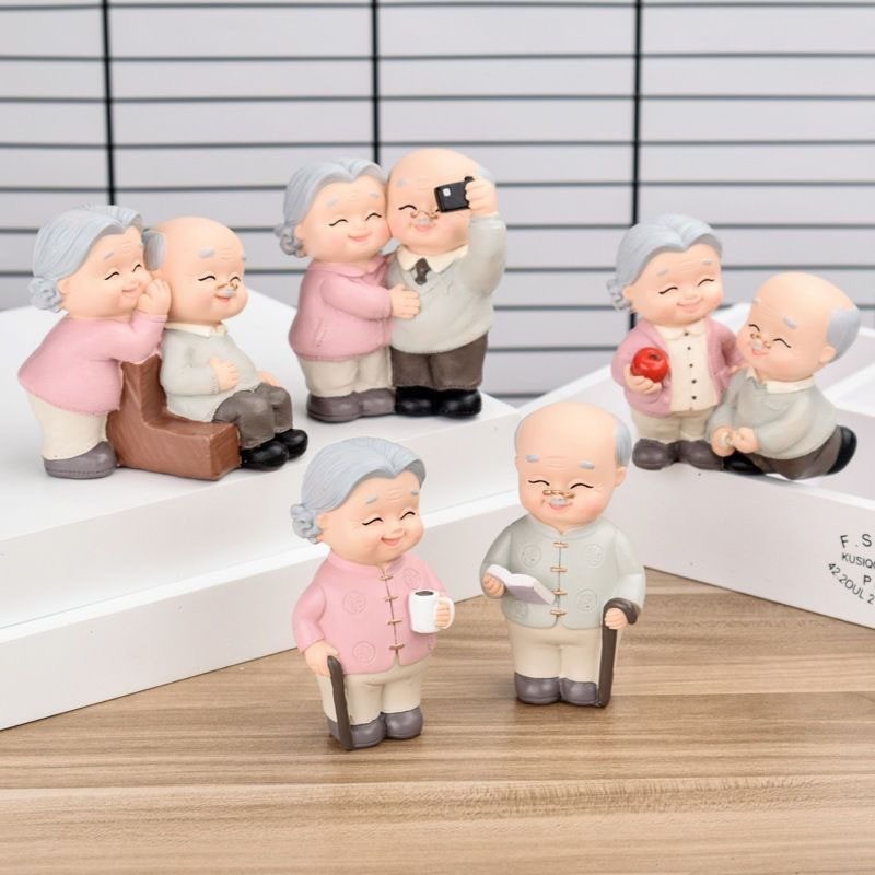 [COD]Nenek Kakek Couple Bahan Resin Miniatur Dekorasi Rumah Hadiah Ulang Tahun Pernikahan Patung Pajangan Kakek Nenek