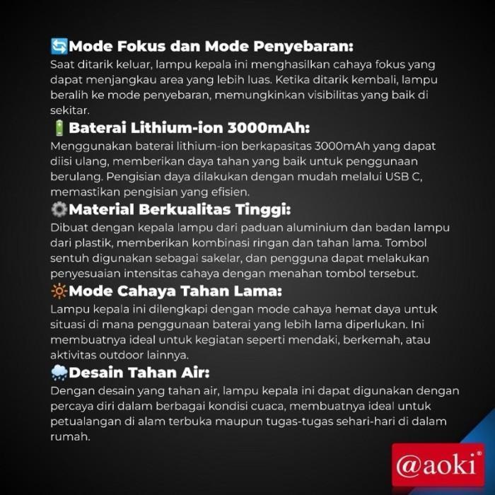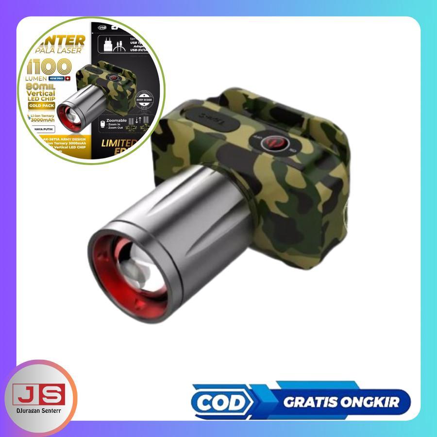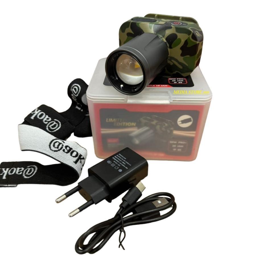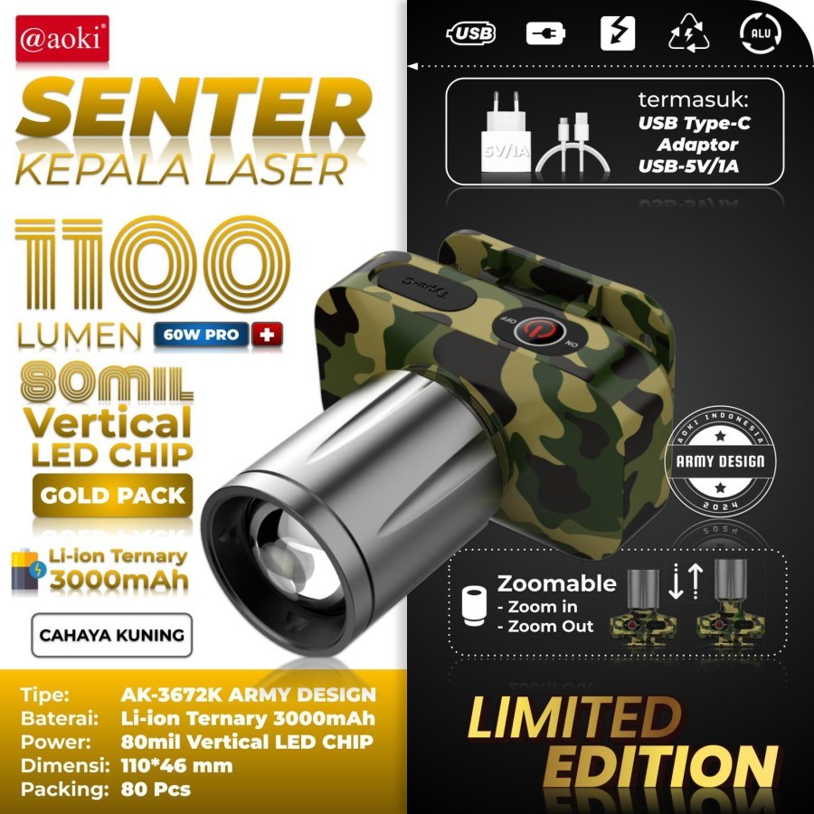 SENTER KEPALA ZOOM ARMY AOKI AK-3671A / AK-3672K 60W PRO+ - 1100 LUMEN - SUPER TERANG - JARAK JAUH - TAHAN LAMA - TYPE-C - PUTIH