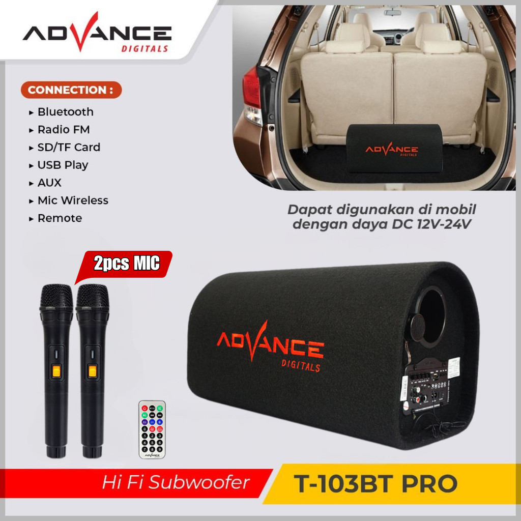 2MIC Advance Speaker Bluetooth Karaoke Portable Multimedia (Dapat dihubungkan ke mobil)Speaker Subwoofer System Speaker Motor 8inch+1xMic Wireless t103bt/103pro