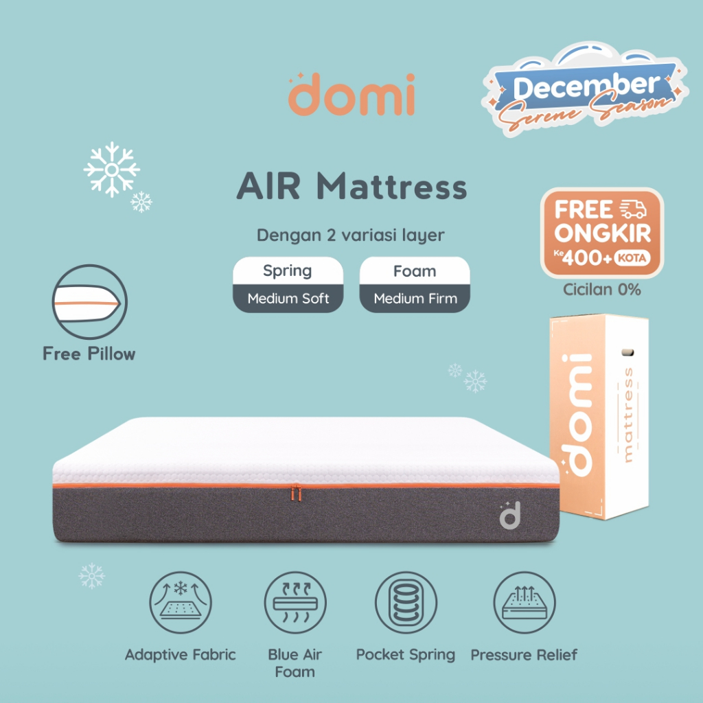 Domi AIR Mattress 24cm / Kasur Pocket Spring Bed / Cooling Blue Air Foam / Air Flow / Mattress in a Box