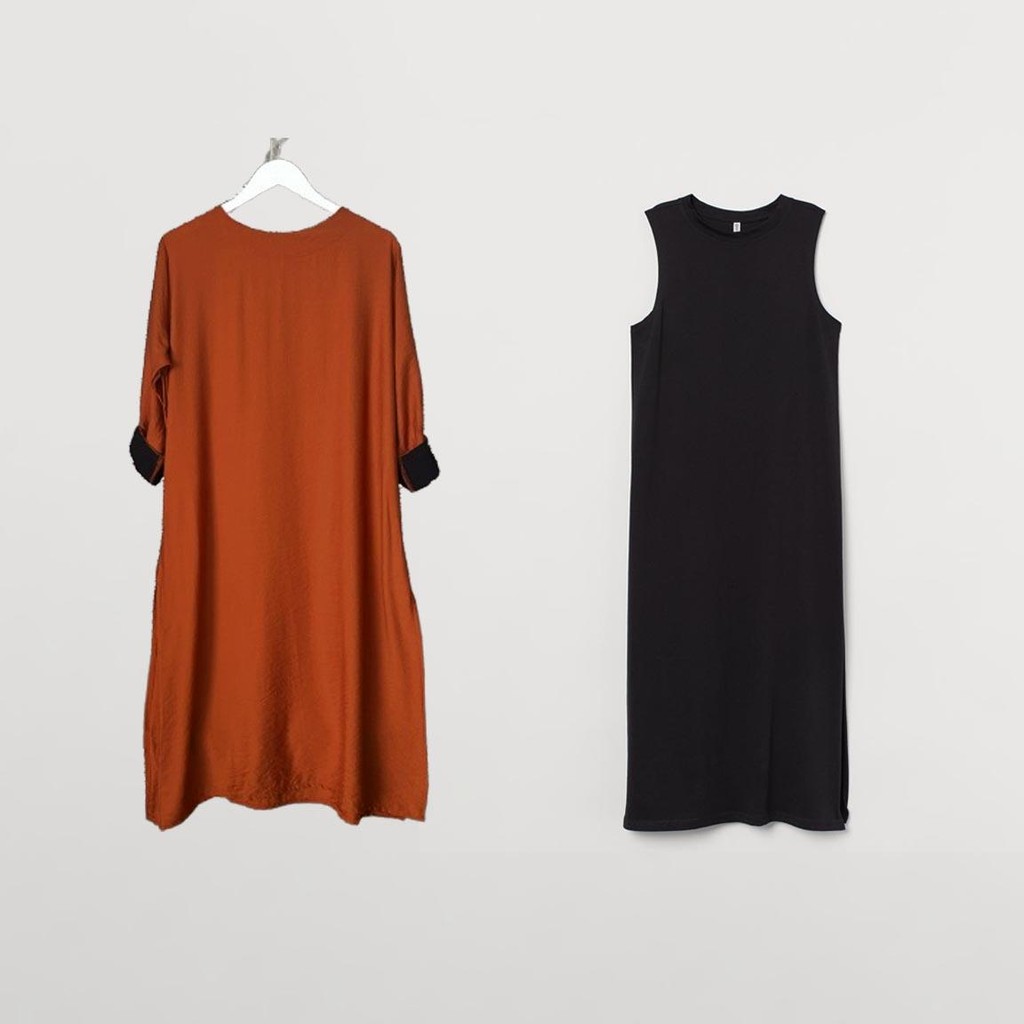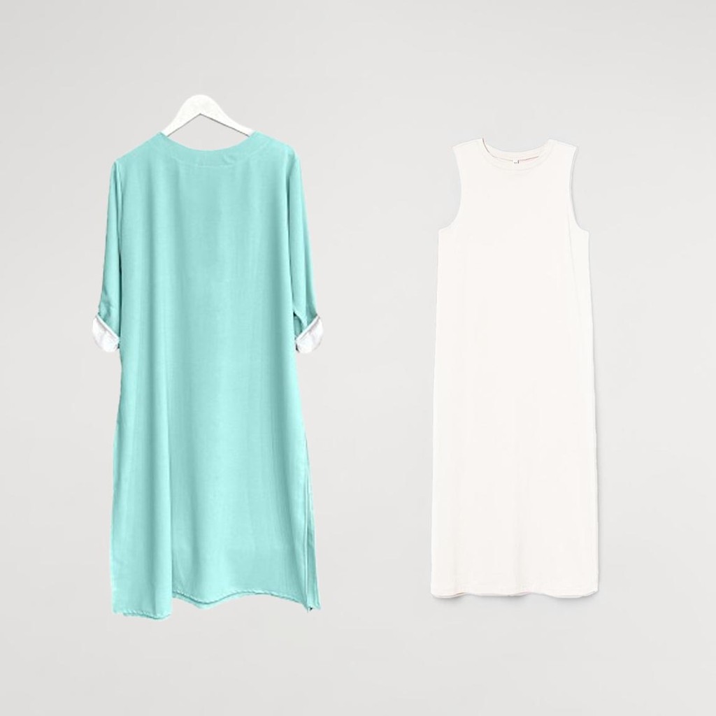 GENKA - One Set Nafisa Inner Dress dan Outter Dress Linen