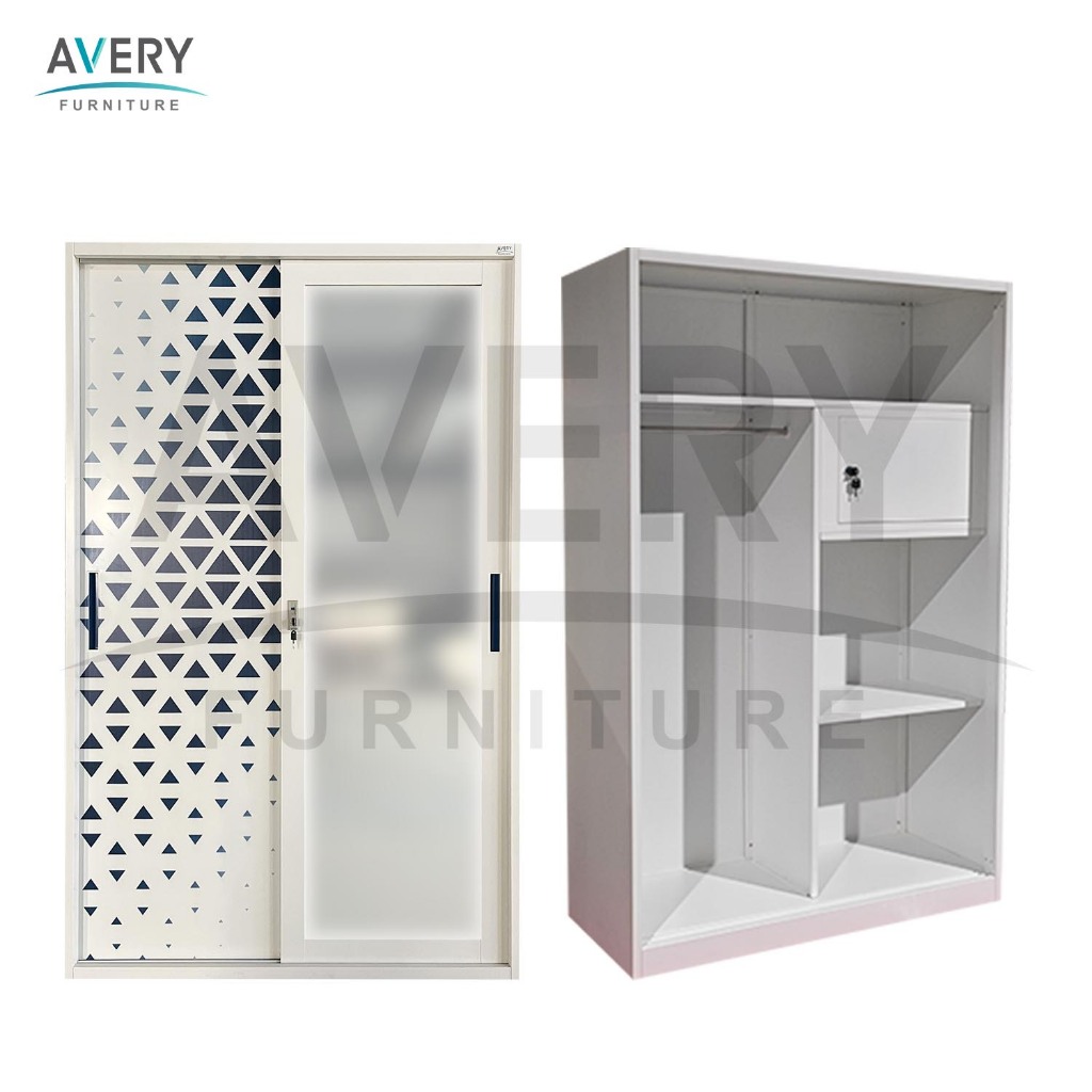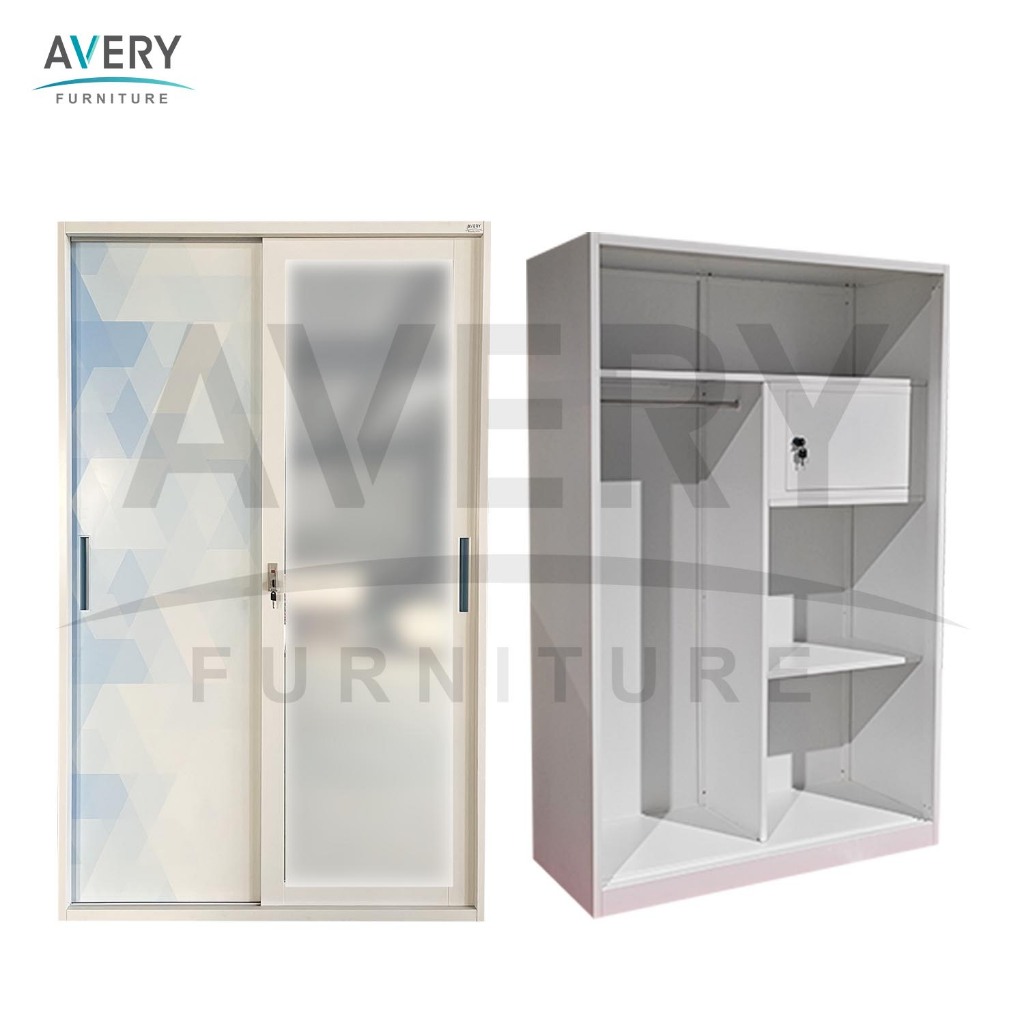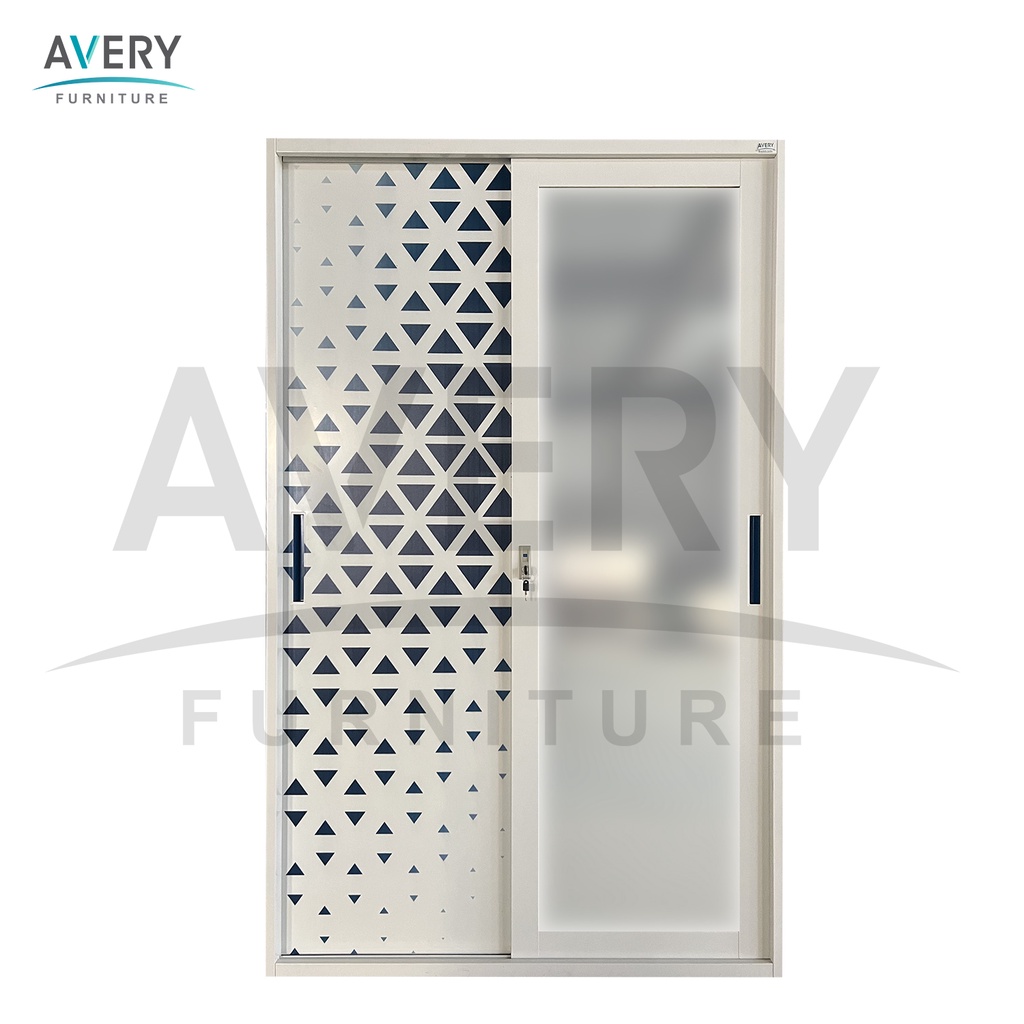 Avery - HVC-120 Lemari Pakaian Full Besi 2 Pintu Kaca / Lemari Baju Pakaian Besi