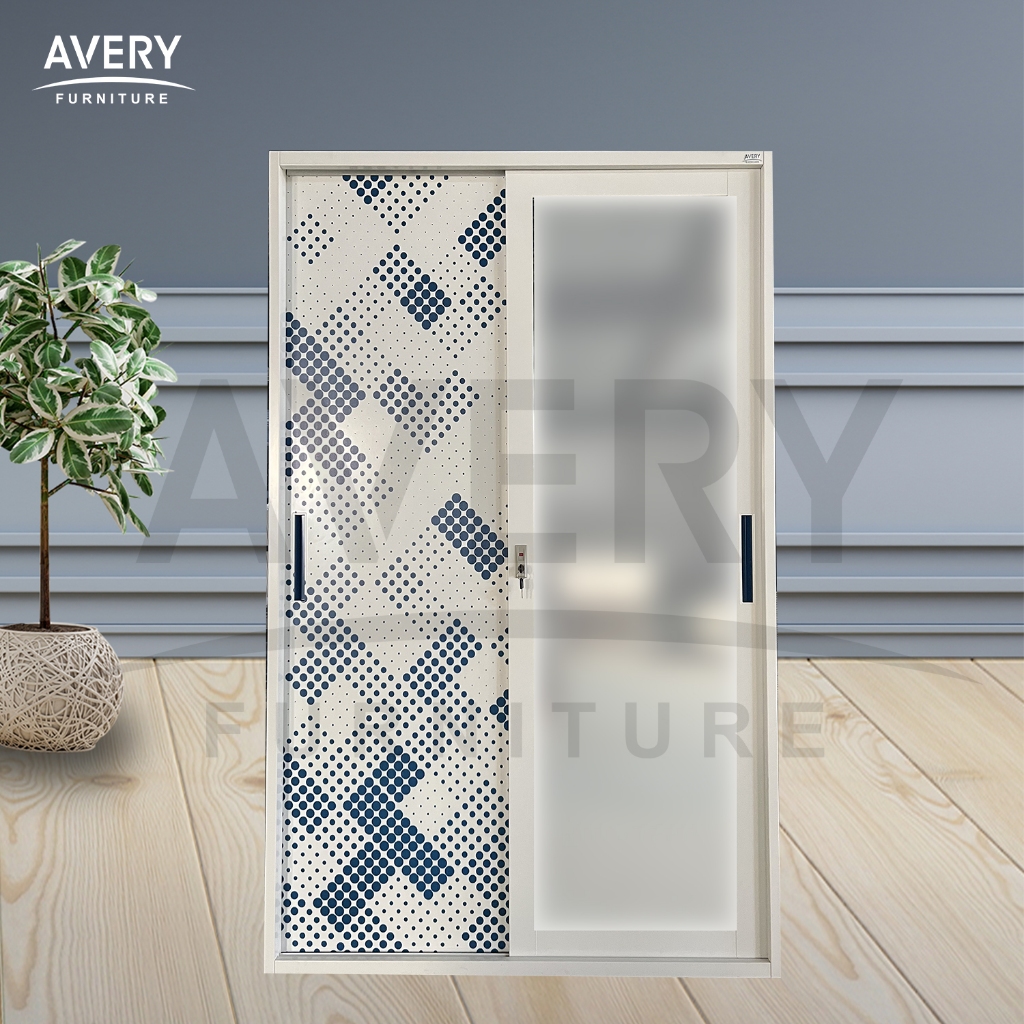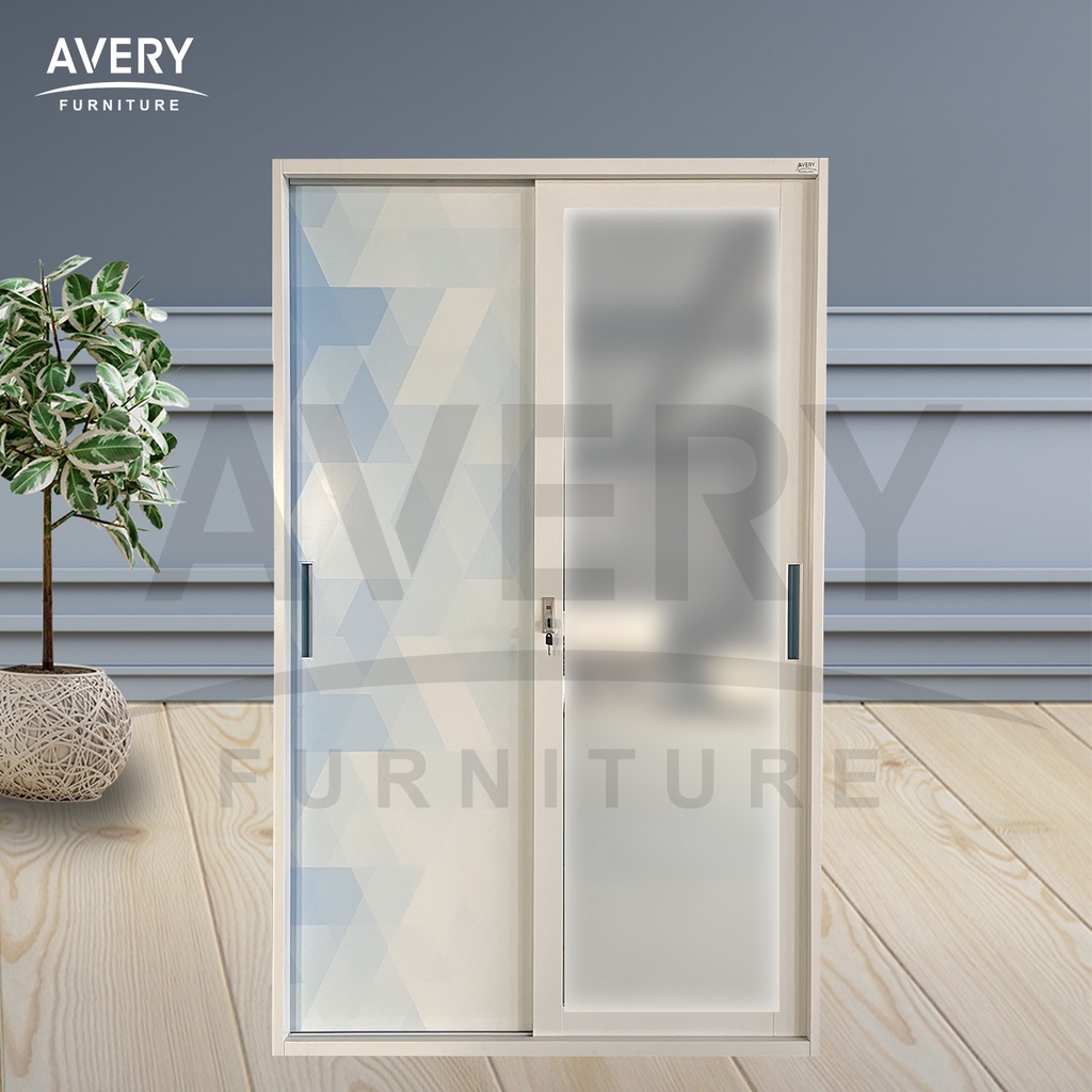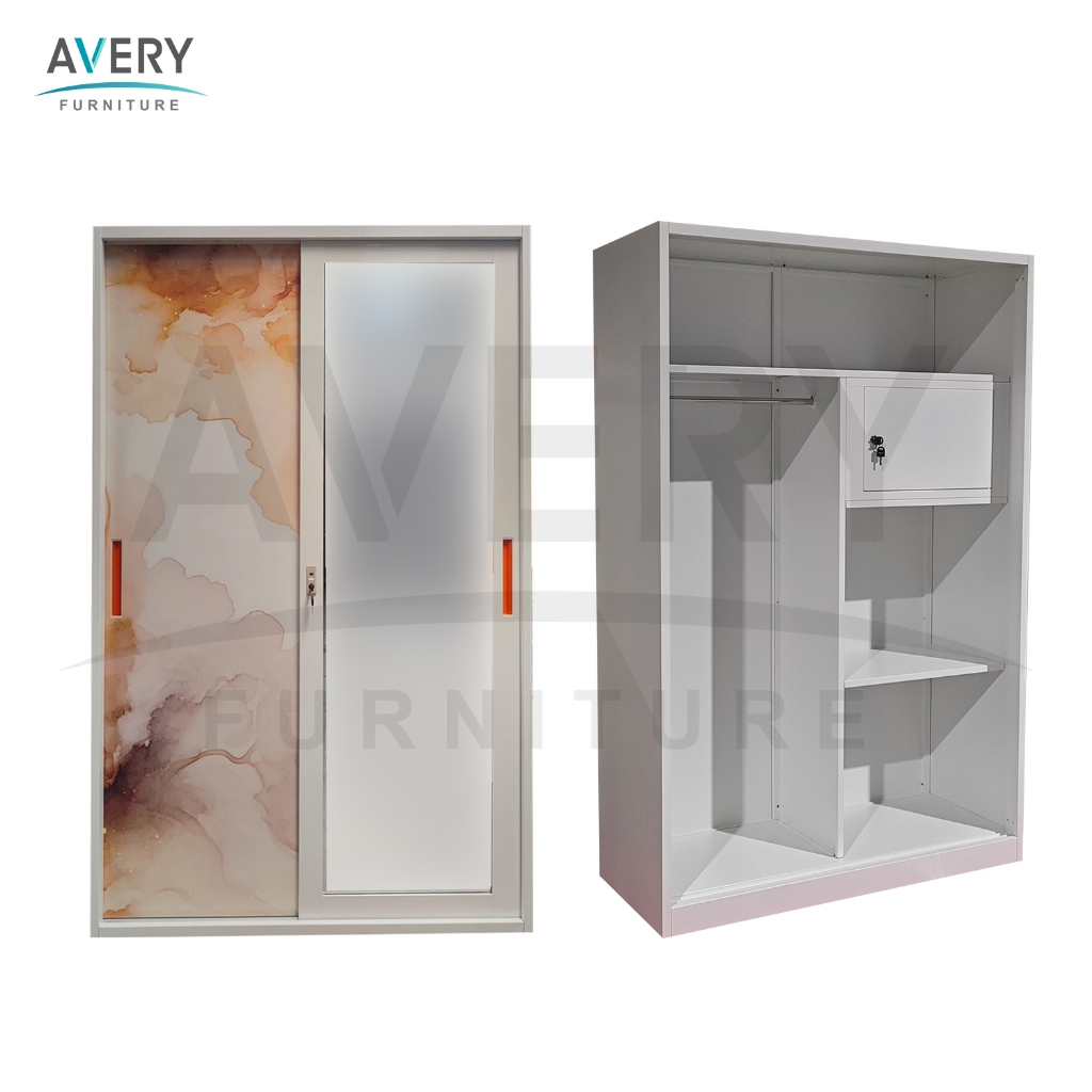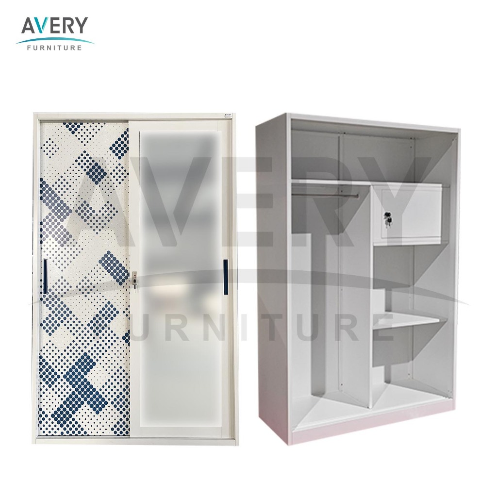 Avery - HVC-120 Lemari Pakaian Full Besi 2 Pintu Kaca / Lemari Baju Pakaian Besi