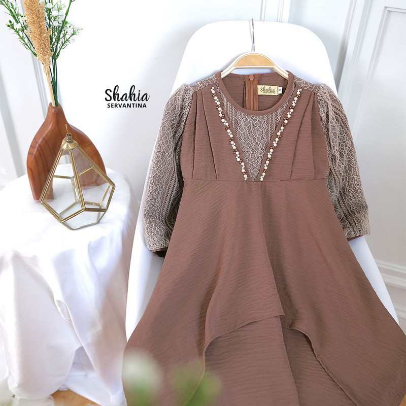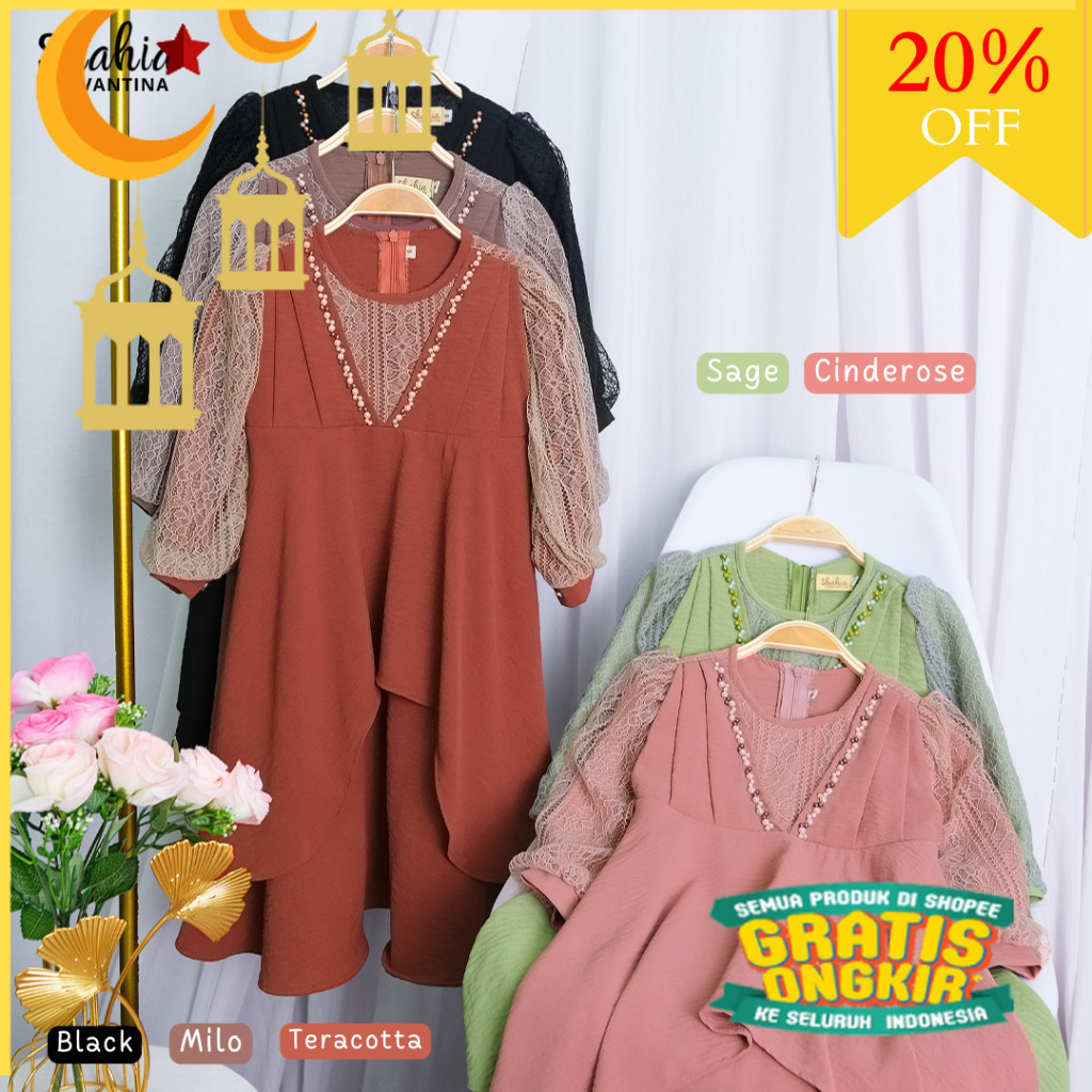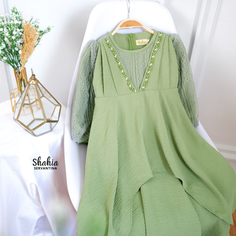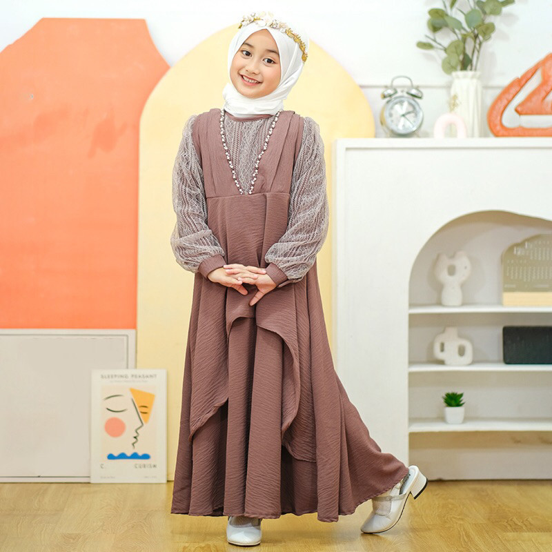 Shahia Servantina - (FREE HIJAB) Nadlyn Dress Gamis Anak Perempuan/nude yellow kuning mustard
