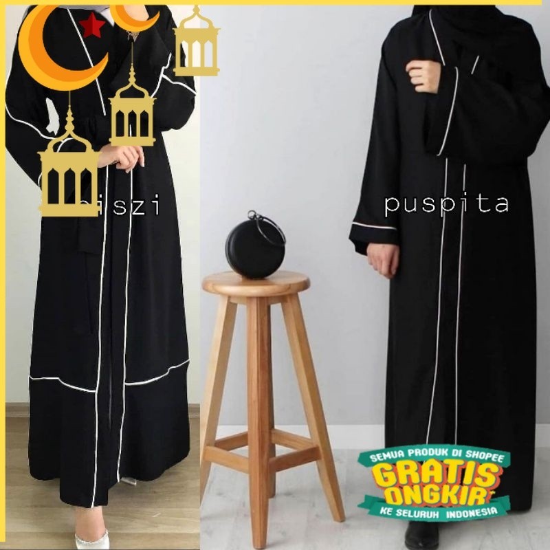 Abayah Turkey Gamis Hitam Dress Maxi Dubai Puspita Bisban White / Black Dan Biszi/nude yellow kuning mustard