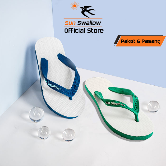 Sun Swallow Paket 6 Pasang Sandal Jepit Karet Basic 05 Putih Klasik Per Size