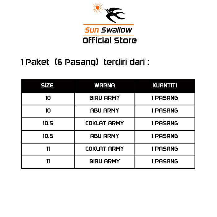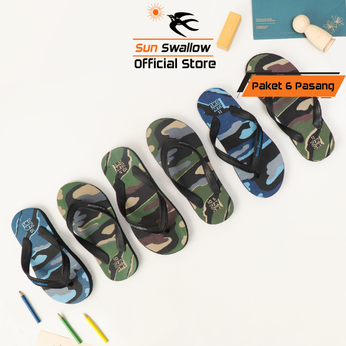 Sun Swallow Paket 6 Pasang Sandal Jepit Pria Karet Army Motif Tentara