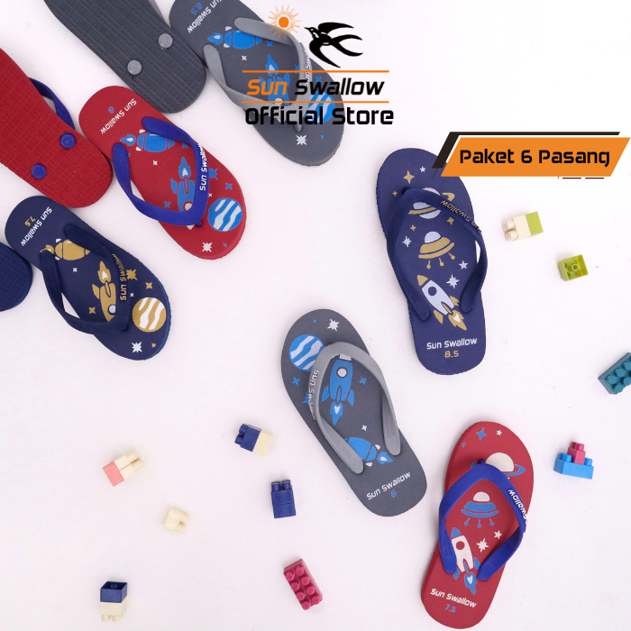 Sandal Sun Swallow Paket 6 Pasang Sendal Jepit Anak Karet Planet Series