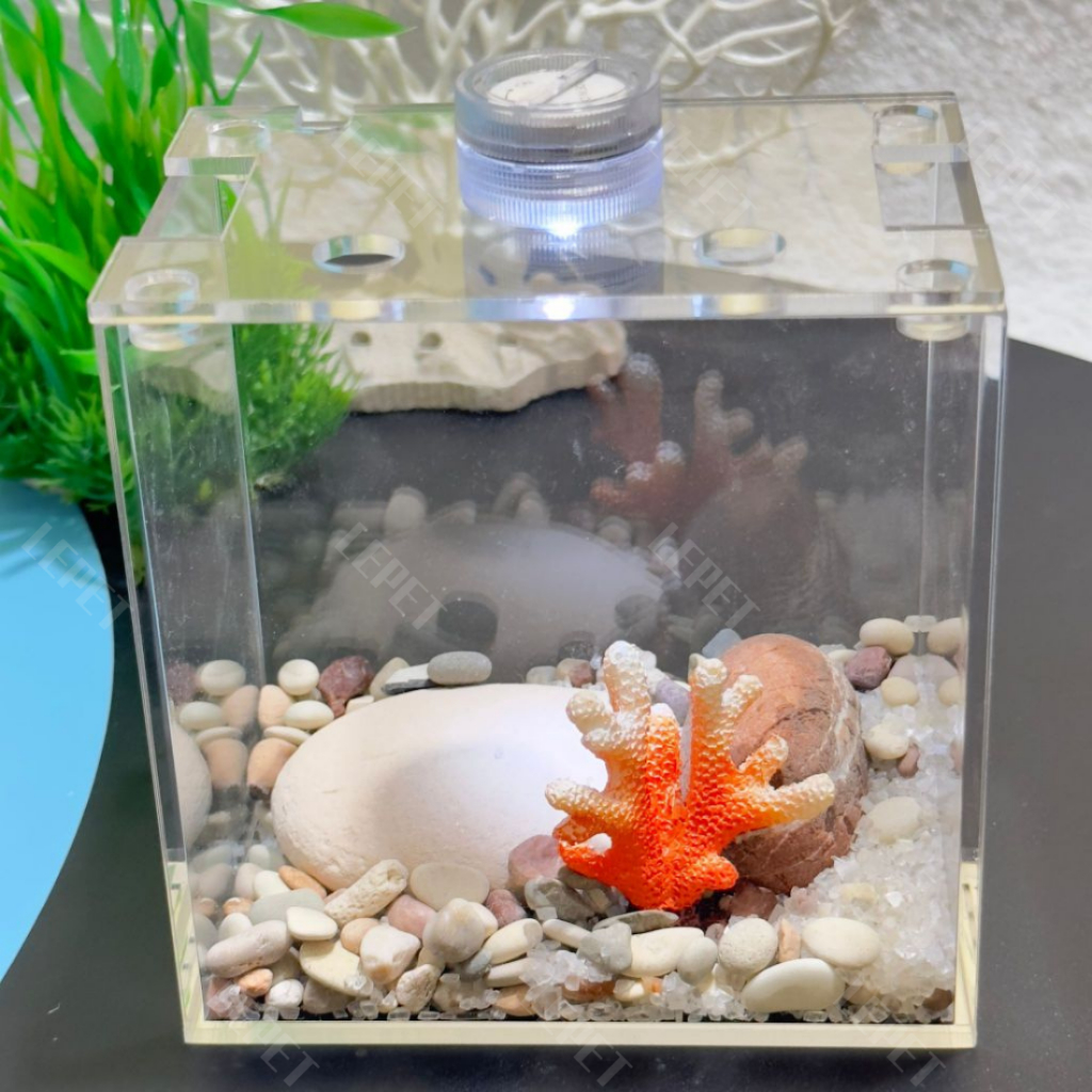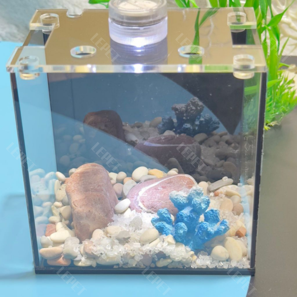 LEPET Akuarium Ikan Cupang 1 skat / Tempat Ikan Kecil Akrilik / Aquarium Mini Acrylic(FREE LAMPU,TUTUP DAN BATU)