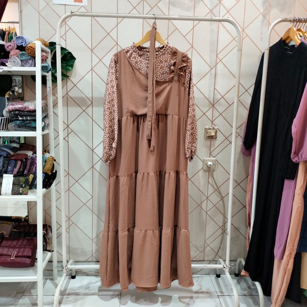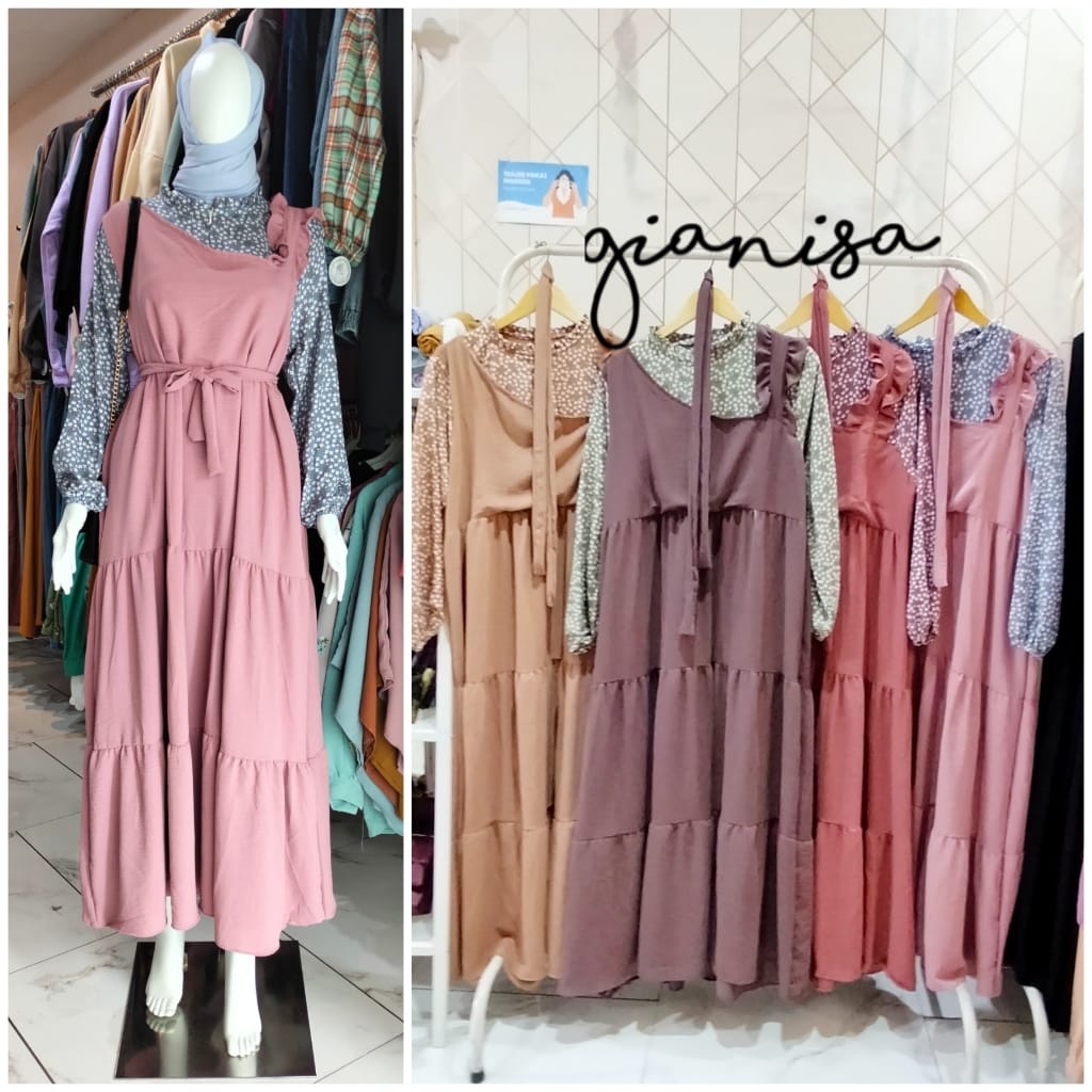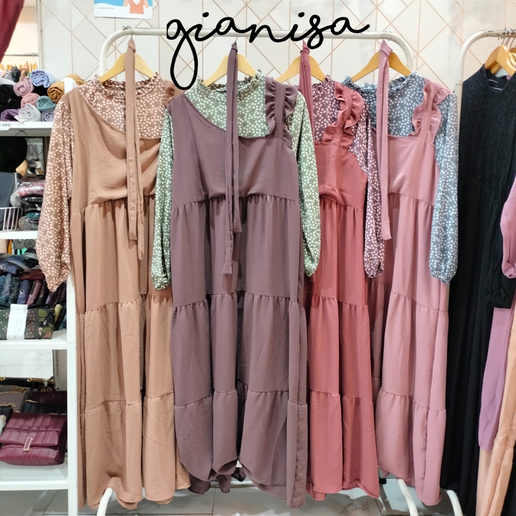 GIANISA | RENIA DRESS / BAHAN SHAKILLA MIX CRINKLE AIRFLOW / DRESS MOTIF / MOTIF BUNGA / BUSUI FRIENDLY / WUDHU FRIENDLY / TALI PINGGANG / DRESS BABY DOLL /