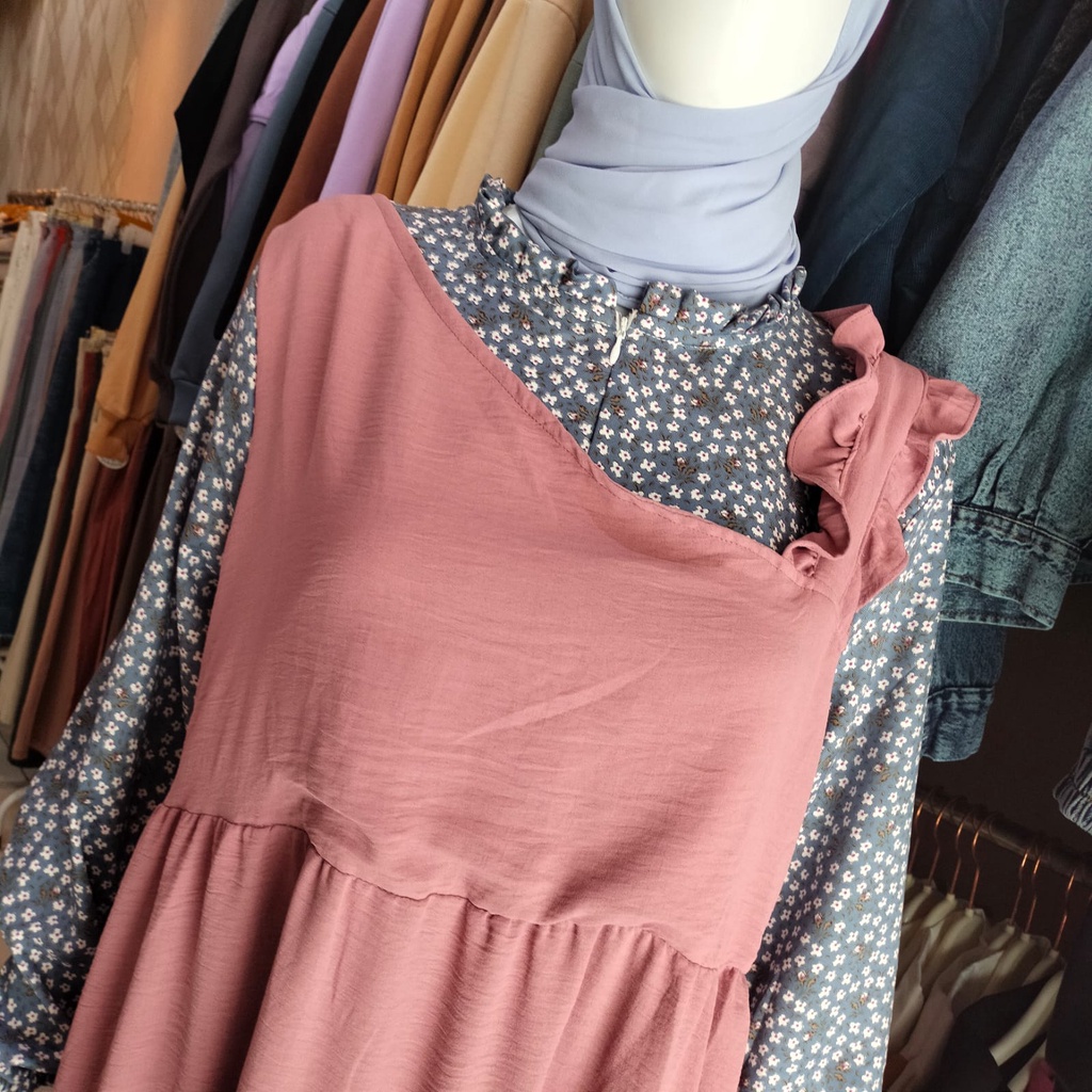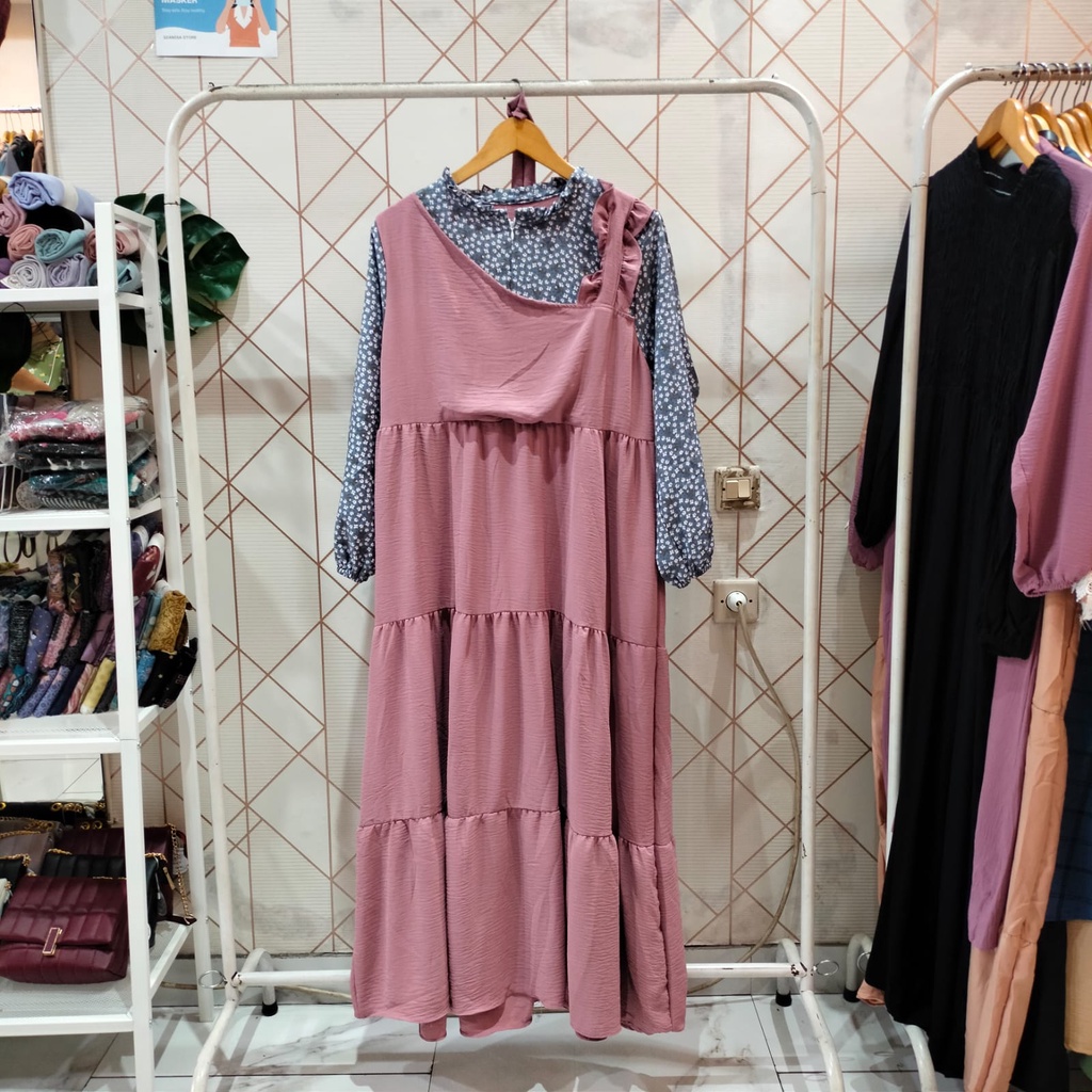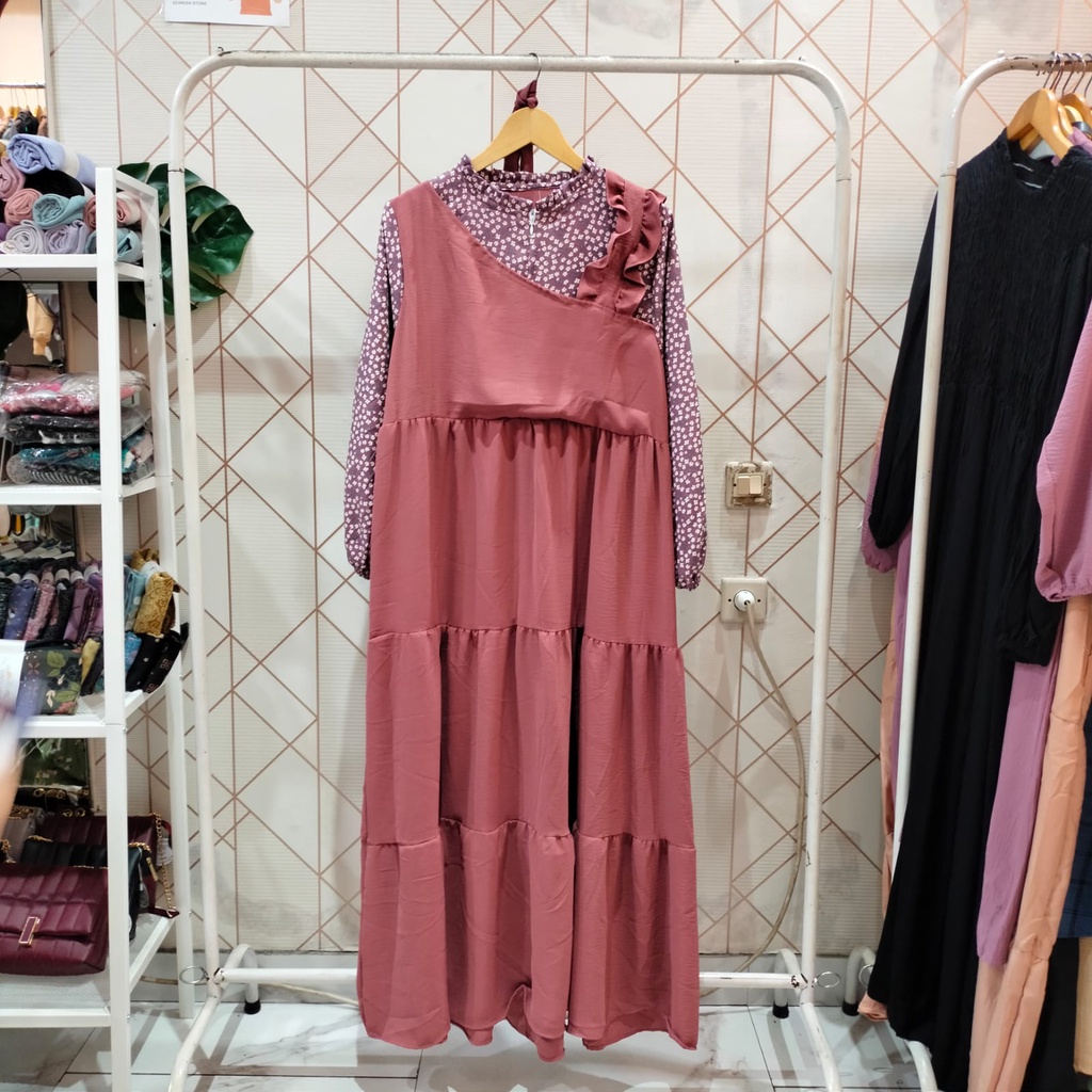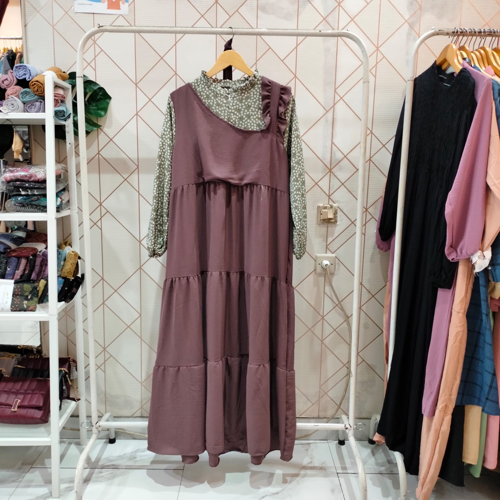 GIANISA | RENIA DRESS / BAHAN SHAKILLA MIX CRINKLE AIRFLOW / DRESS MOTIF / MOTIF BUNGA / BUSUI FRIENDLY / WUDHU FRIENDLY / TALI PINGGANG / DRESS BABY DOLL /