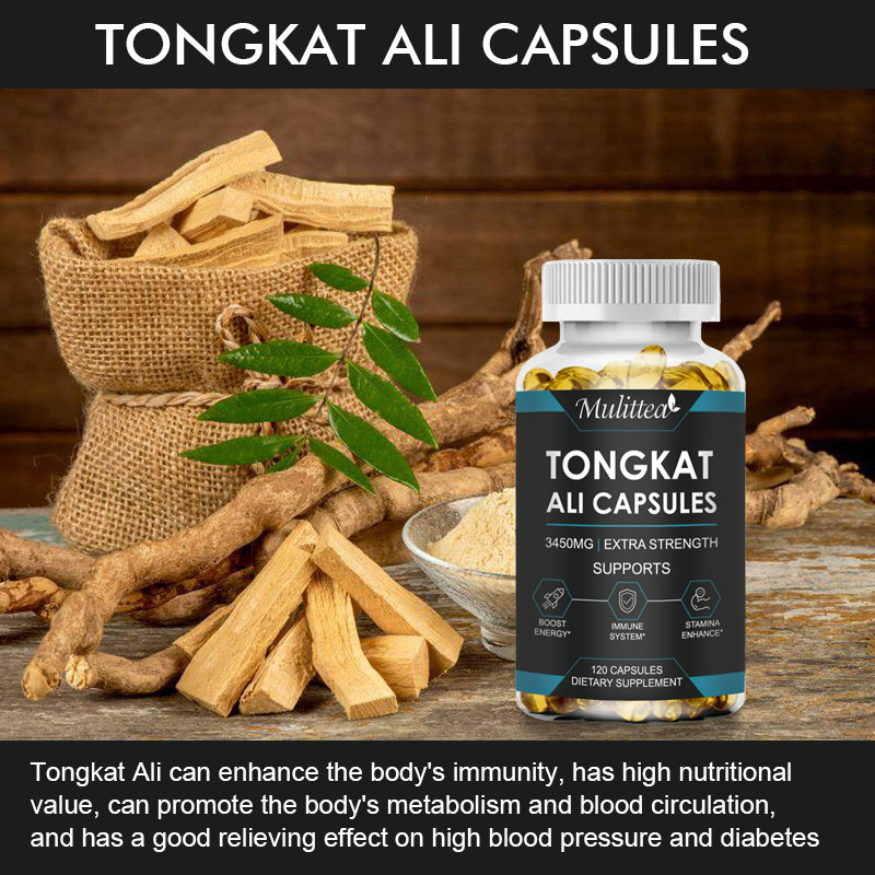 Mulittea Natural Tongkat Ali Root Capsule Ashwagandha Support Health & Stress, Mood, Energy, Endurance Support 120pcs Kapsul Akar Tongkat Ali Alami Ashwagandha Mendukung Kesehatan & Stres, Suasana Hati, Energi, Dukungan Daya Tahan