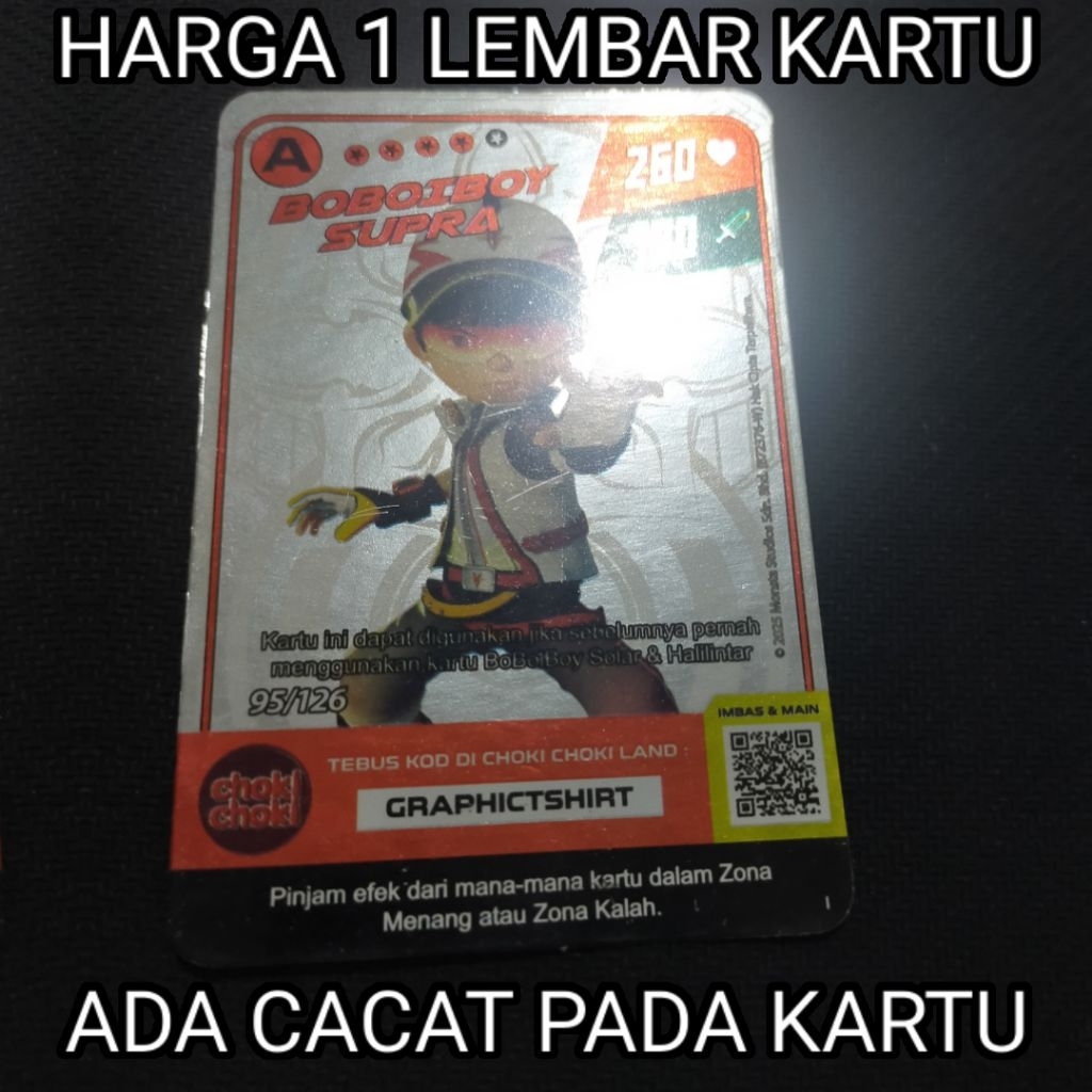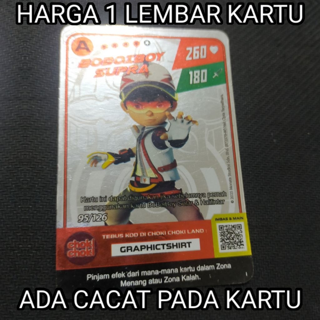 (CACAT/MINUS) Boboiboy Monsta Galaxy Card Boboiboy Supra Choki Choki (Silver)