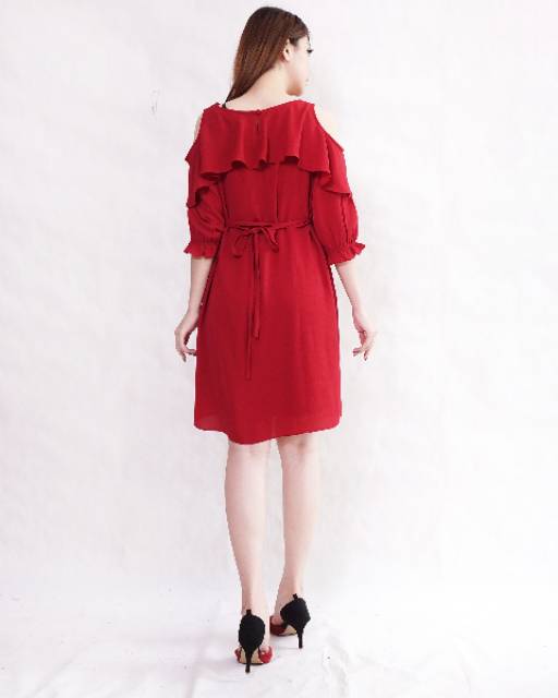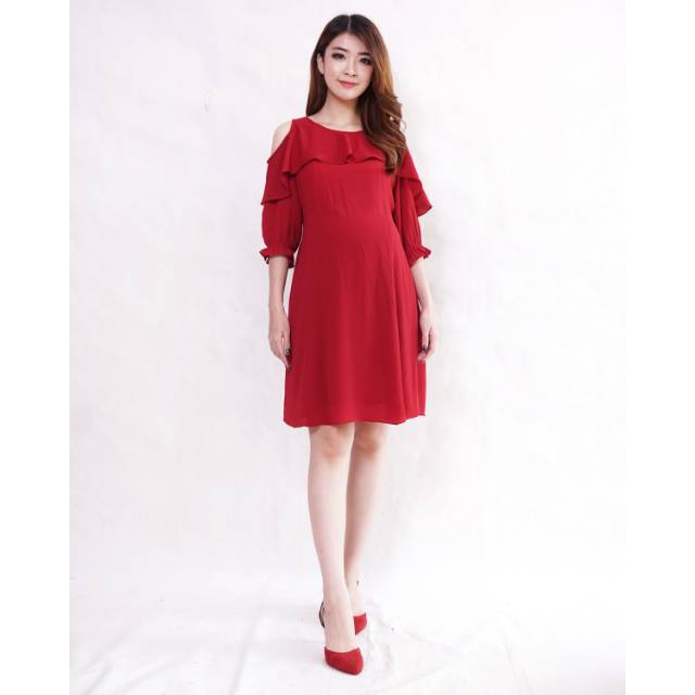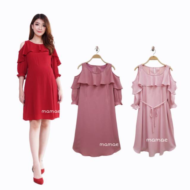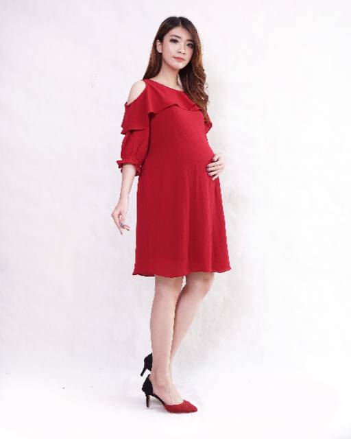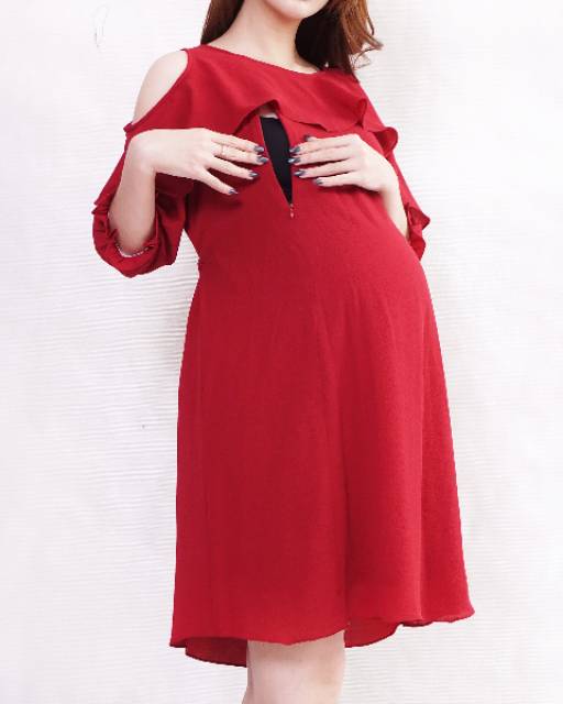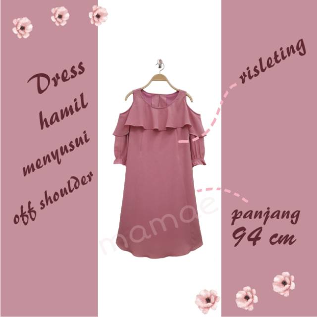 Dress hamil menyusui off shoulder bahan bubbly