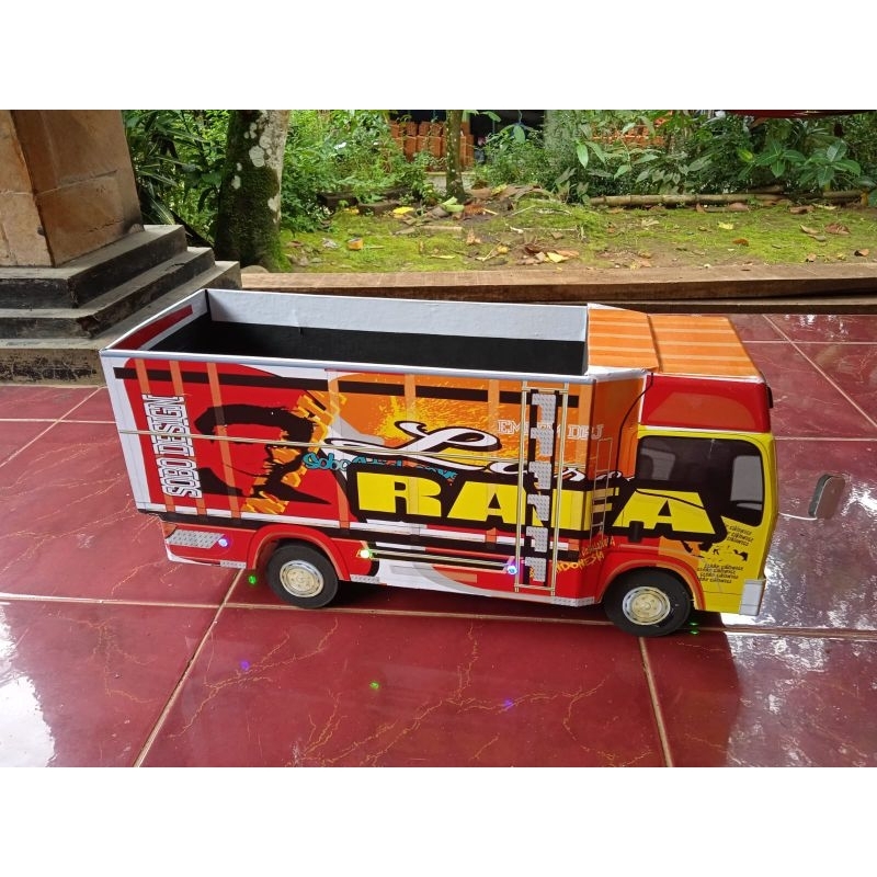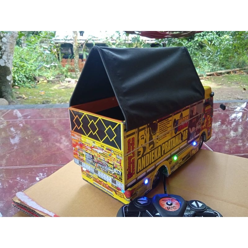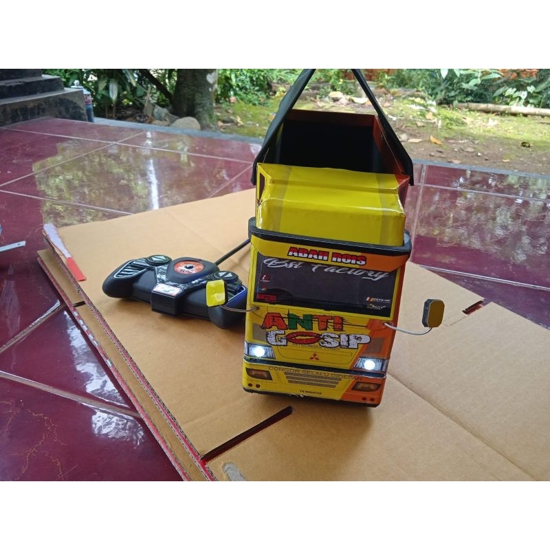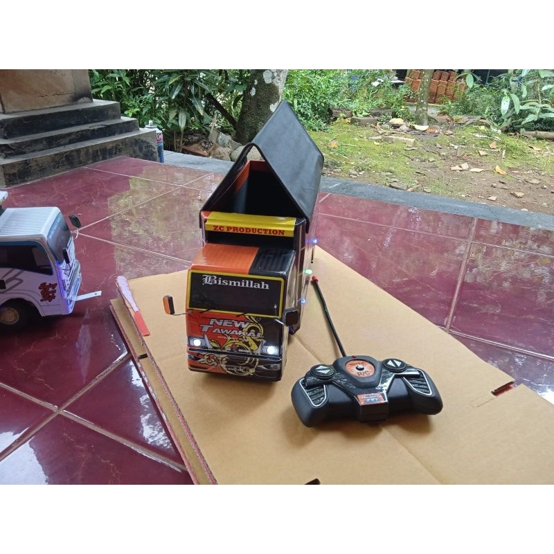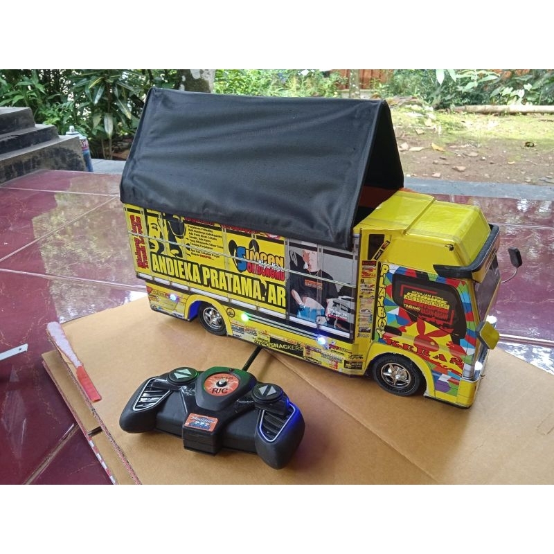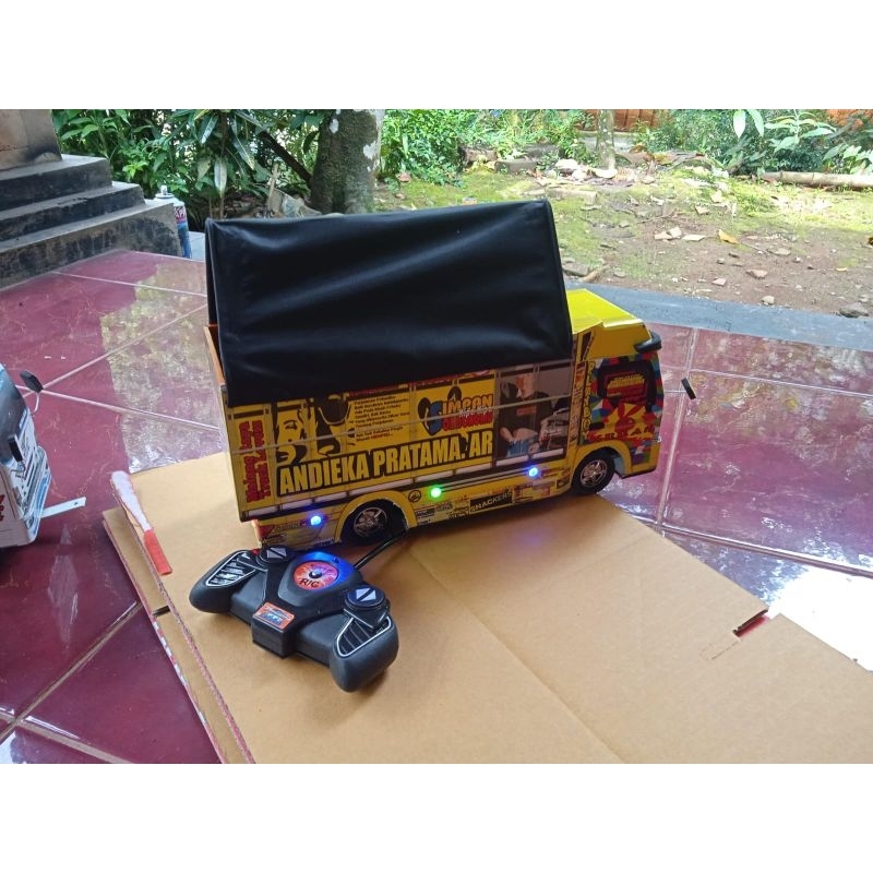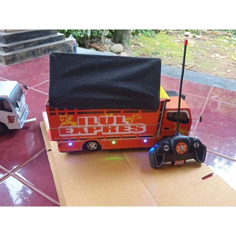 Miniatur truk oleng canter rc remot control batre cash pake lampu leed RGB bonus terpal