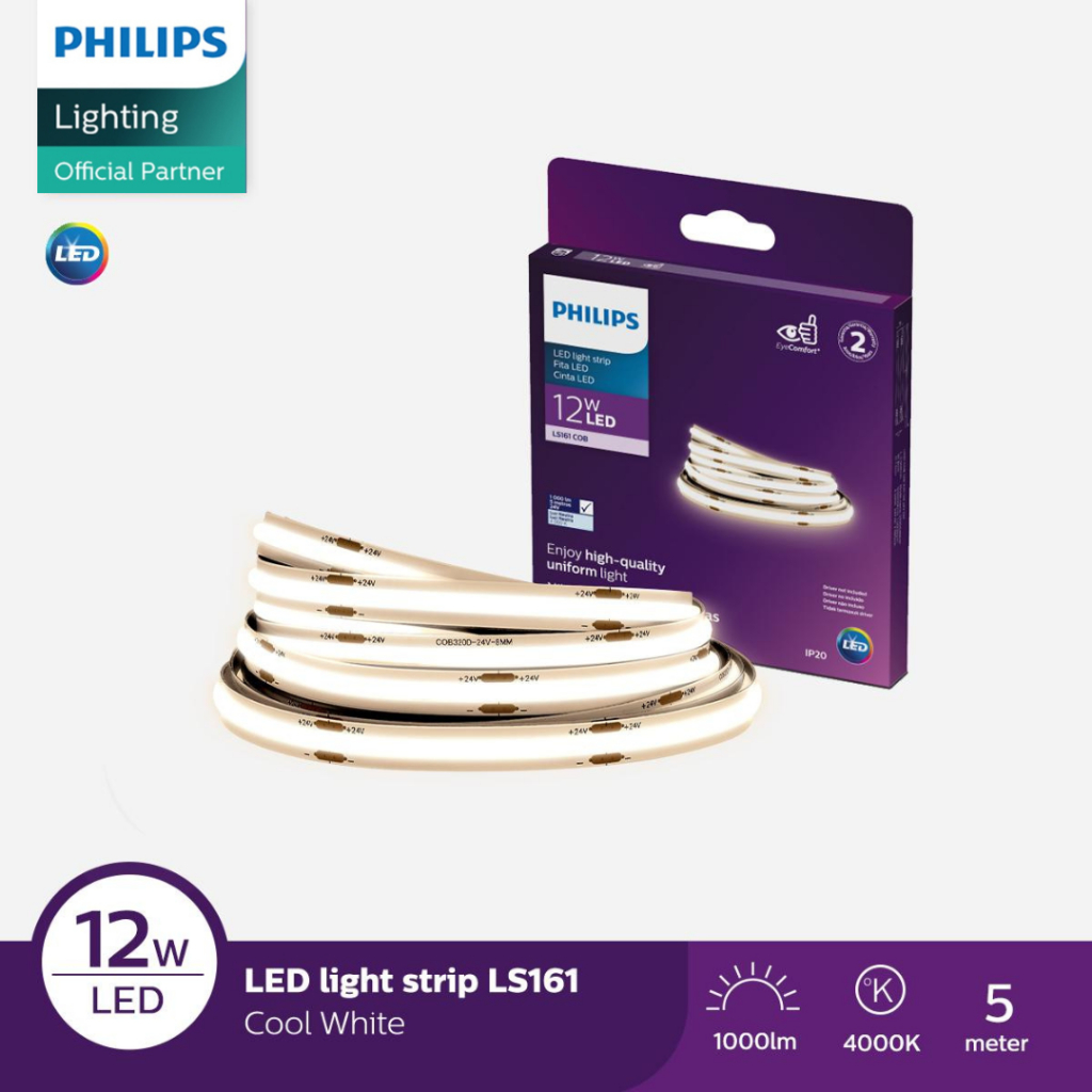 Lampu Philips LED Strip LS161 COB 12W 4000K 5M 24V Semi-Putih