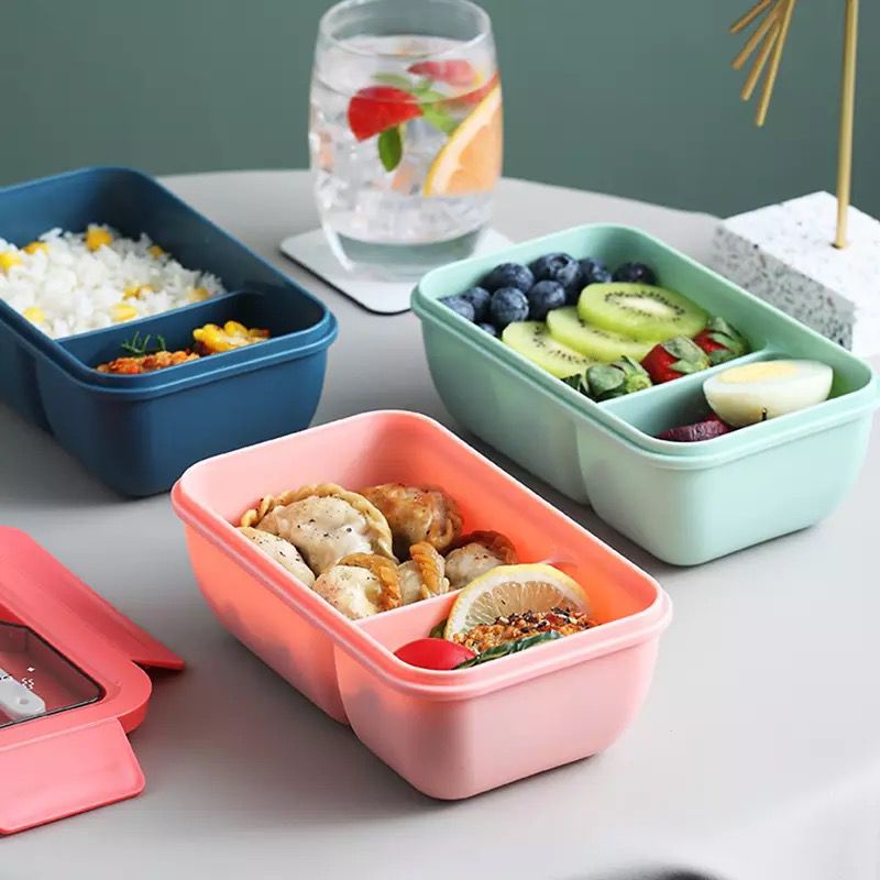 Kotak Makan Bento Lunch Box set Transparant Lid Tempat Makan BPA Free 1100ml